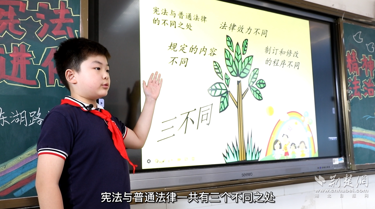 荆楚网(湖北日报网)讯(记者林杉 通讯员何宗兴 张景)“法律就像我们赖以生存的空气,而宪法就像我们头上的太阳,照耀之处都被宪法保护着。”近日,江夏区东湖路学校开展线上“学宪法 讲宪法”宣讲活动,邀请入围2022年湖北省“学宪法 讲宪法”知识竞赛决赛选手——六(5)班学生阮迪恩为全校师生普及宪法知识。