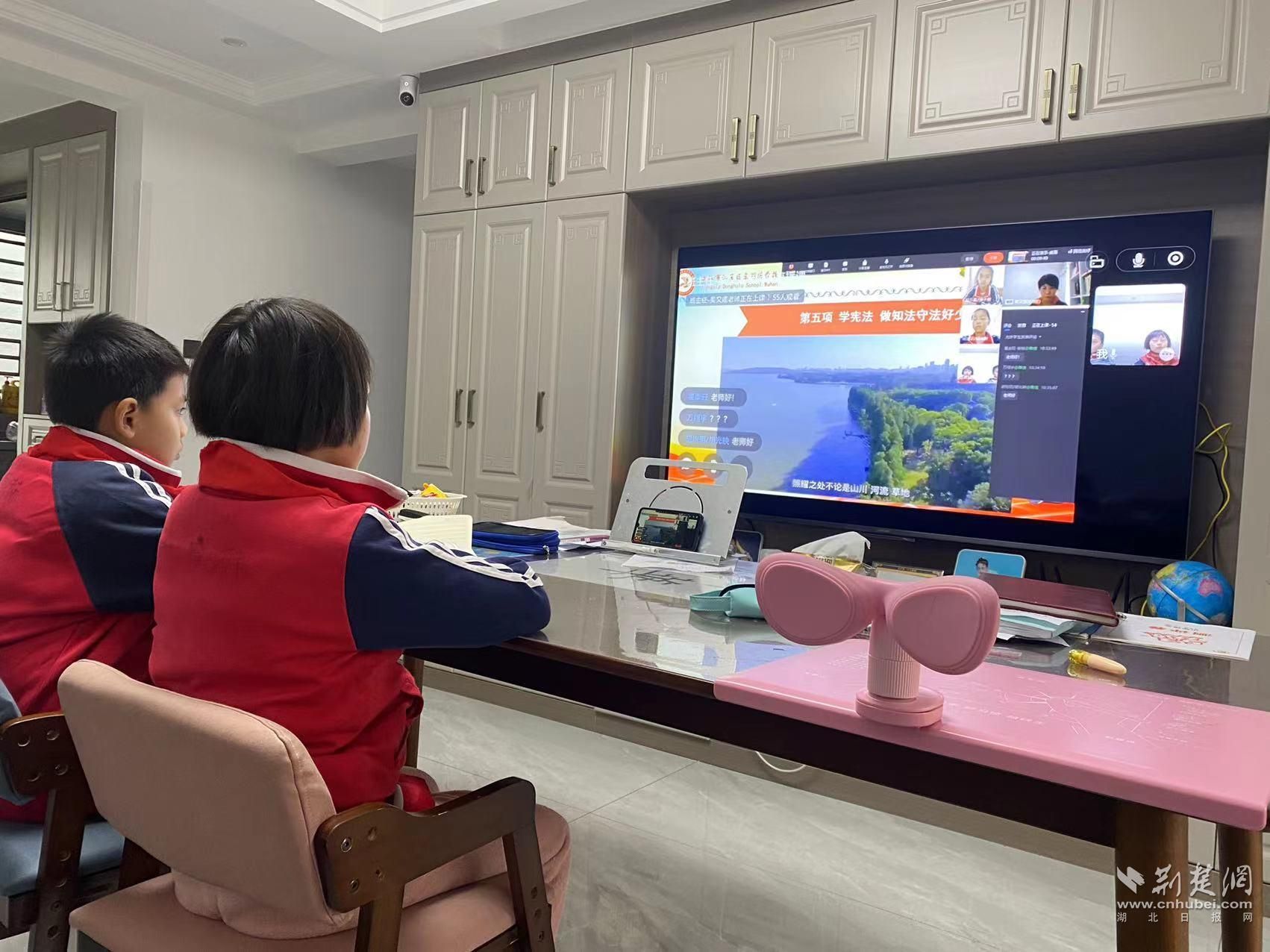 同学们居家学习。学校供图