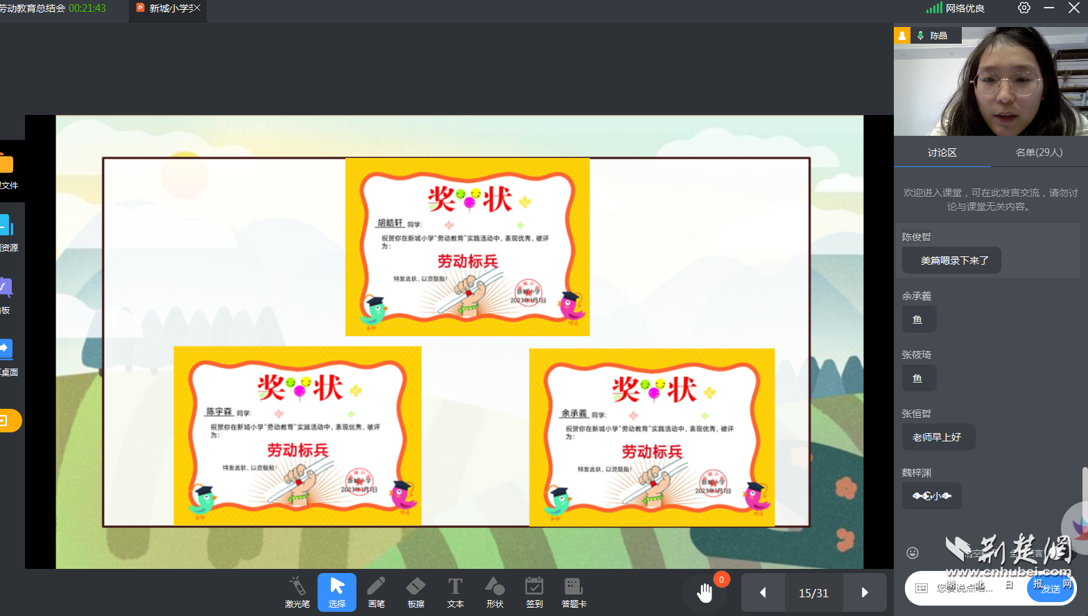 荆楚网(湖北日报网)讯(记者林杉 通讯员陈沐泽)劳动最光荣,实践促成长。1月1日,武汉经济技术开发区新城小学召开线上劳动教育实践活动总结会,以进一步增强同学们的劳动意识、培养同学们的劳动能力。