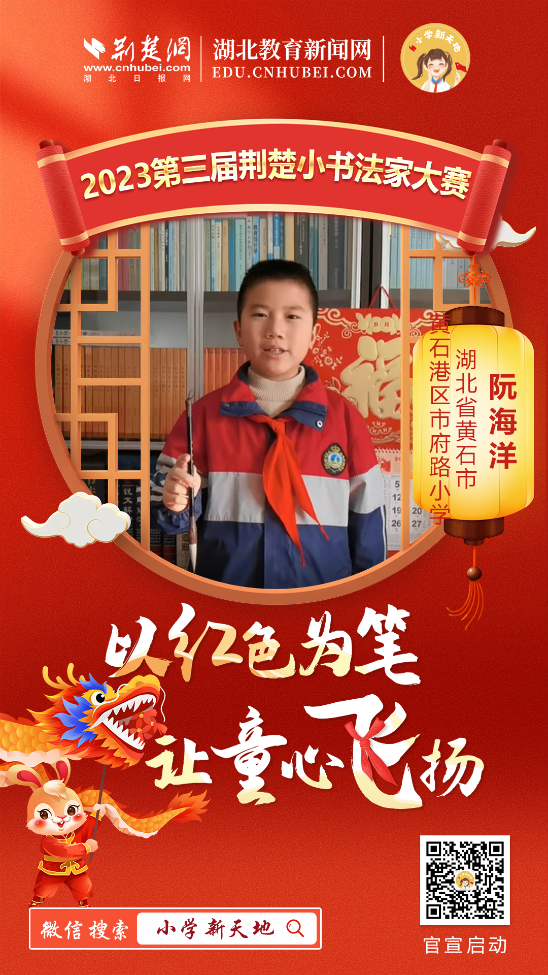 7. 以红色为笔 让童心飞扬!2023第三届荆楚小书法家大赛启动