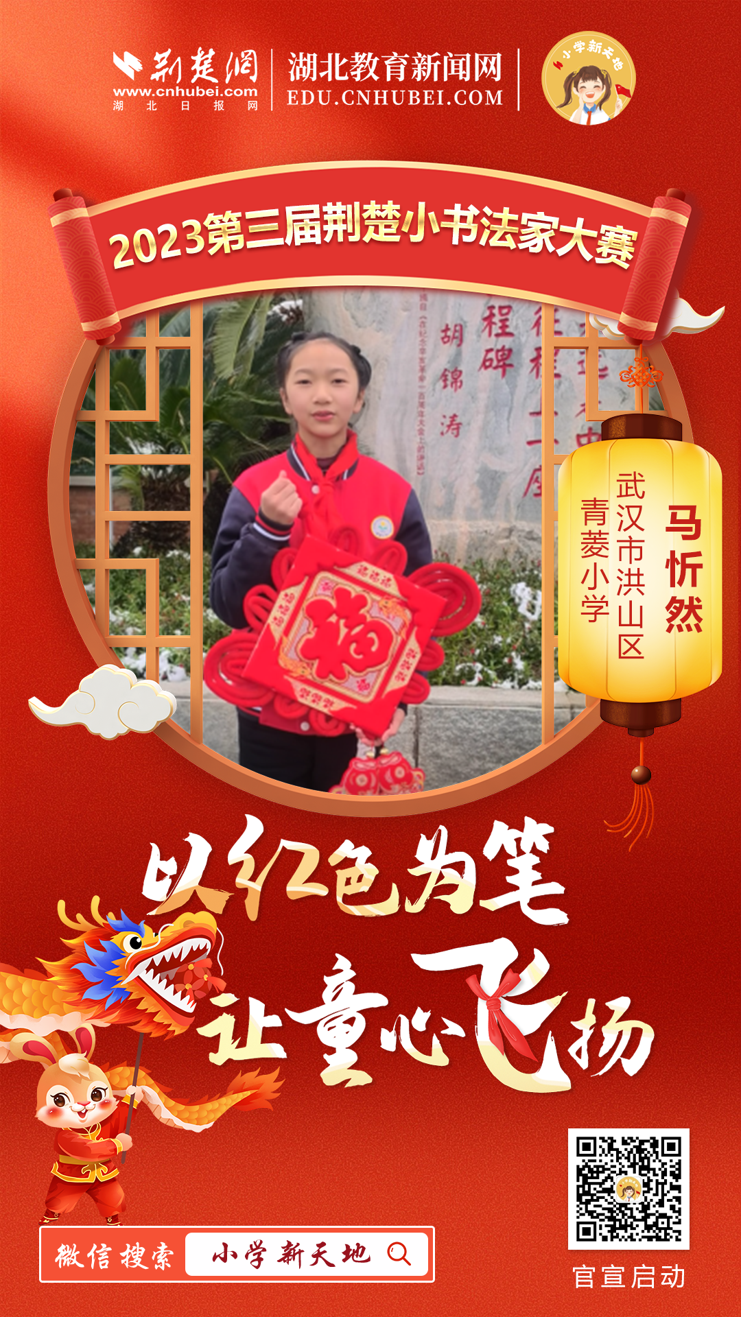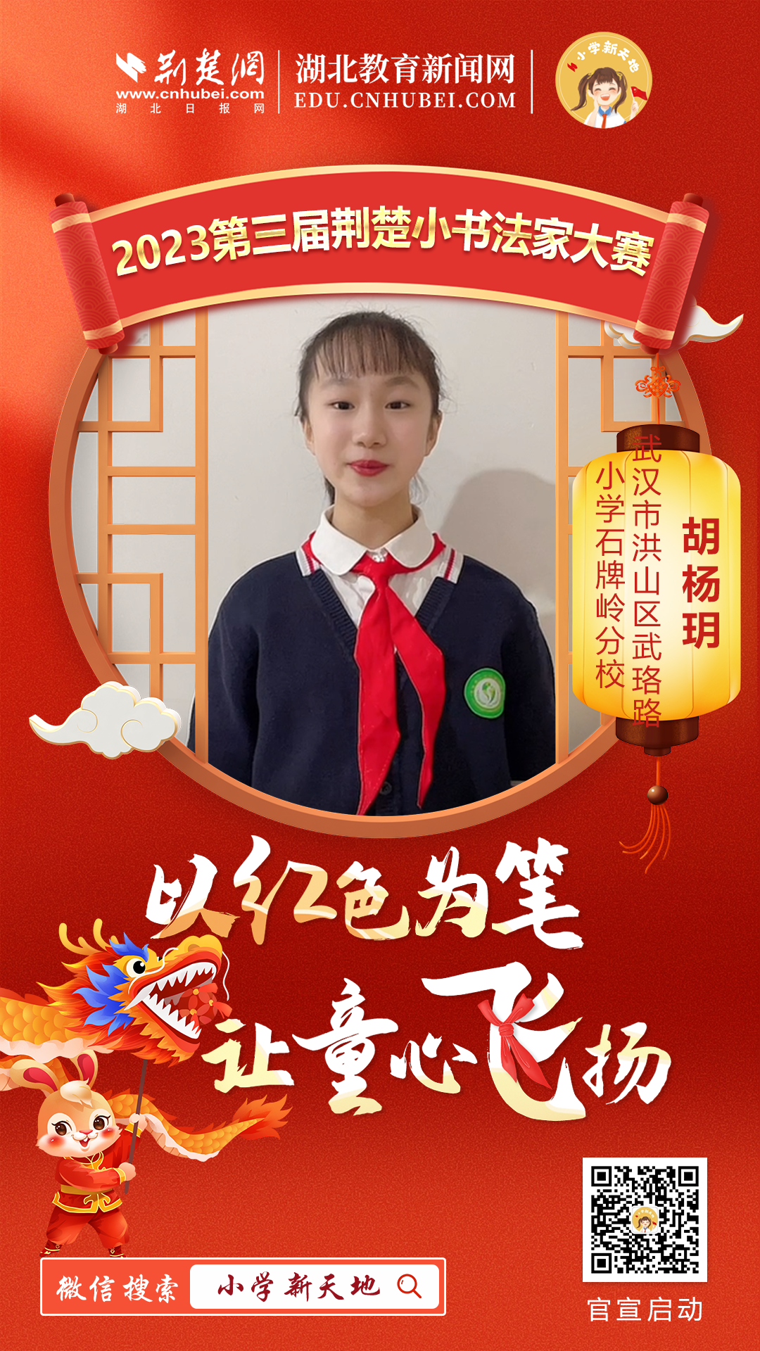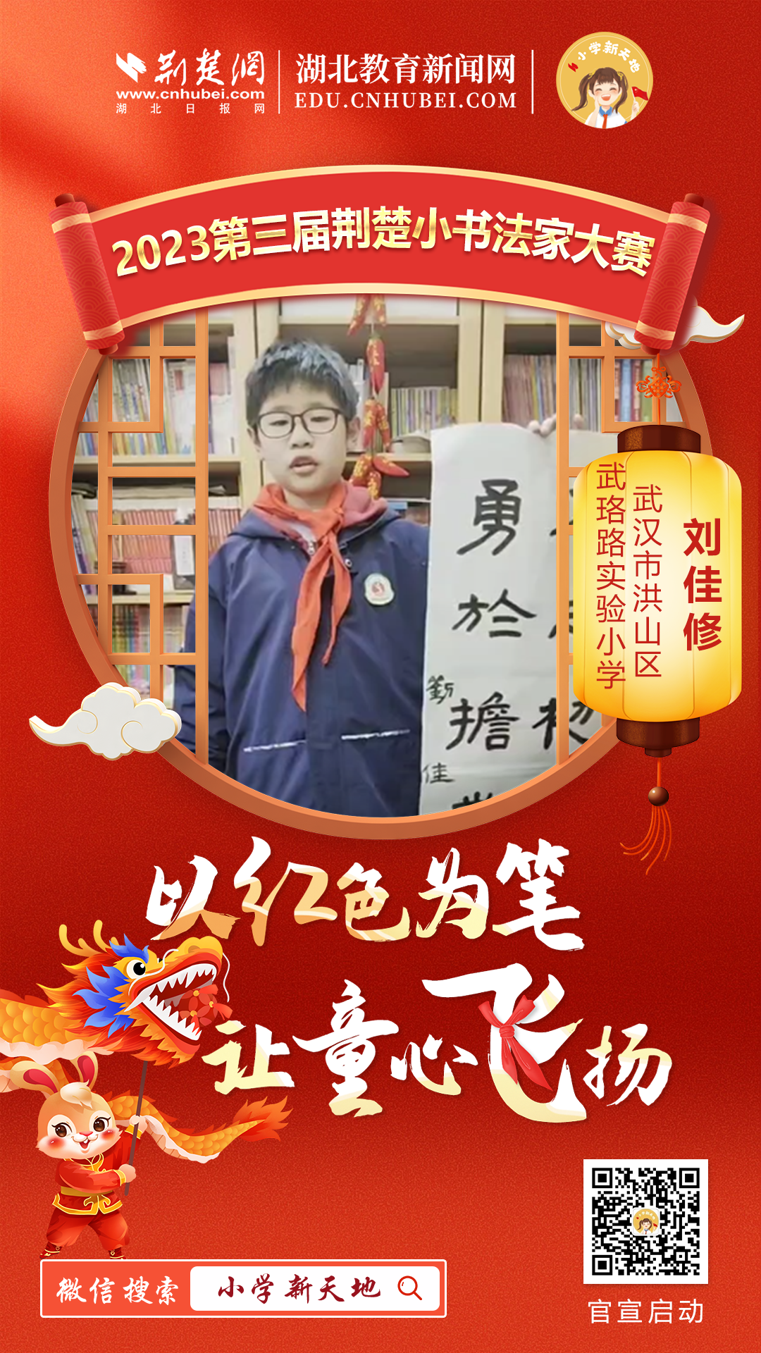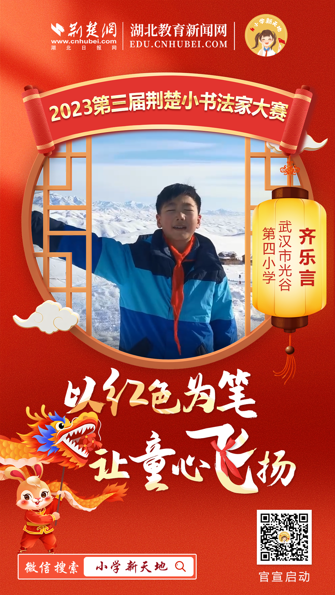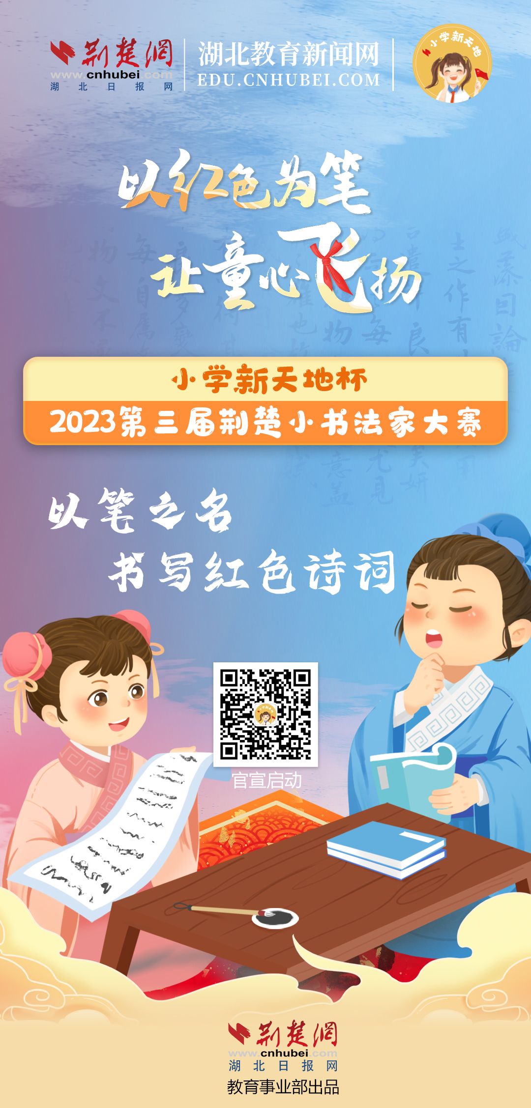荆楚网(湖北日报网)讯(记者许文秀、何鹏、齐一璇、林杉、唐天琪)以笔之名,书写红色诗词;以诗为媒,传承红色精神。由荆楚网(湖北日报网)、湖北日报传媒集团“小学新天地”教育公众平台共同推出的“以红色为笔 让童心飞扬——‘小学新天地杯’2023第三届荆楚小书法家大赛”大型教育公益活动现已正式启动,有毅力、有审美、爱书法、爱学习的时代少年们快来参赛吧。