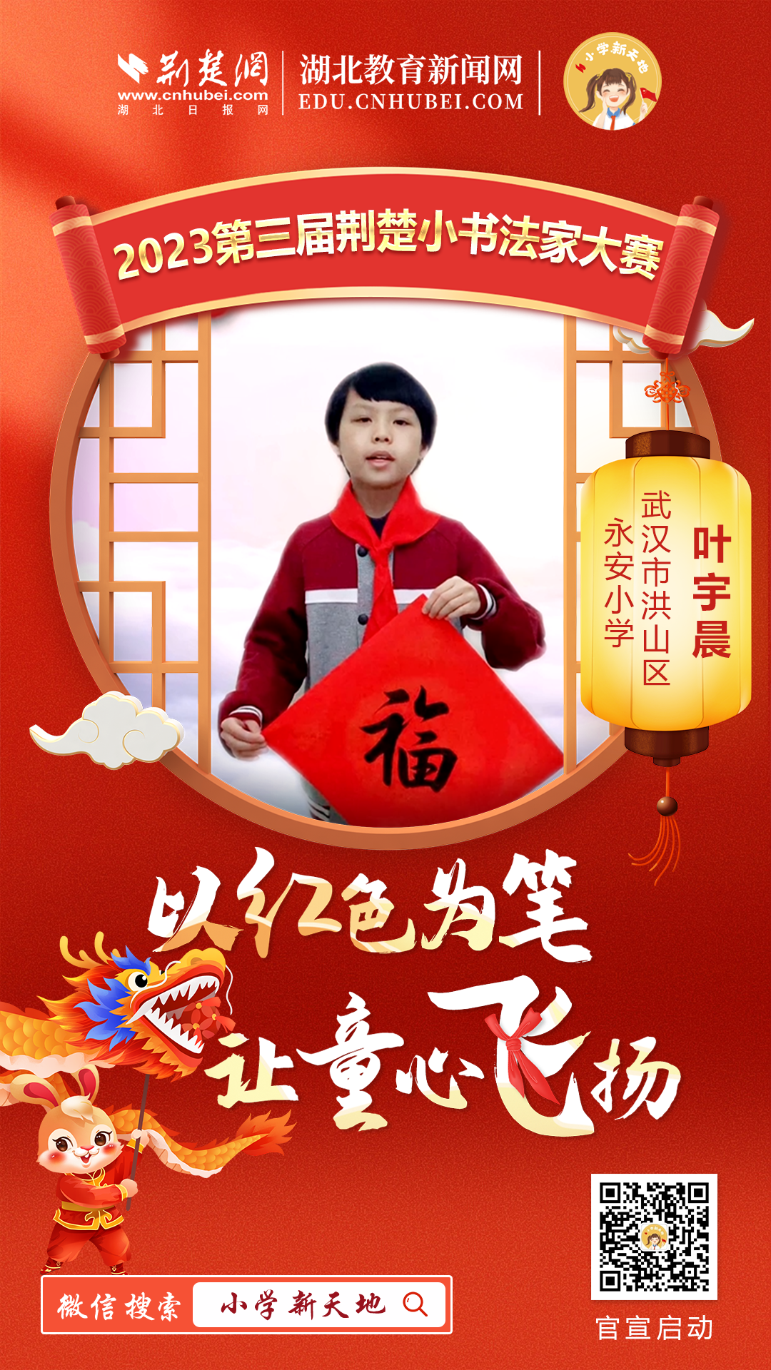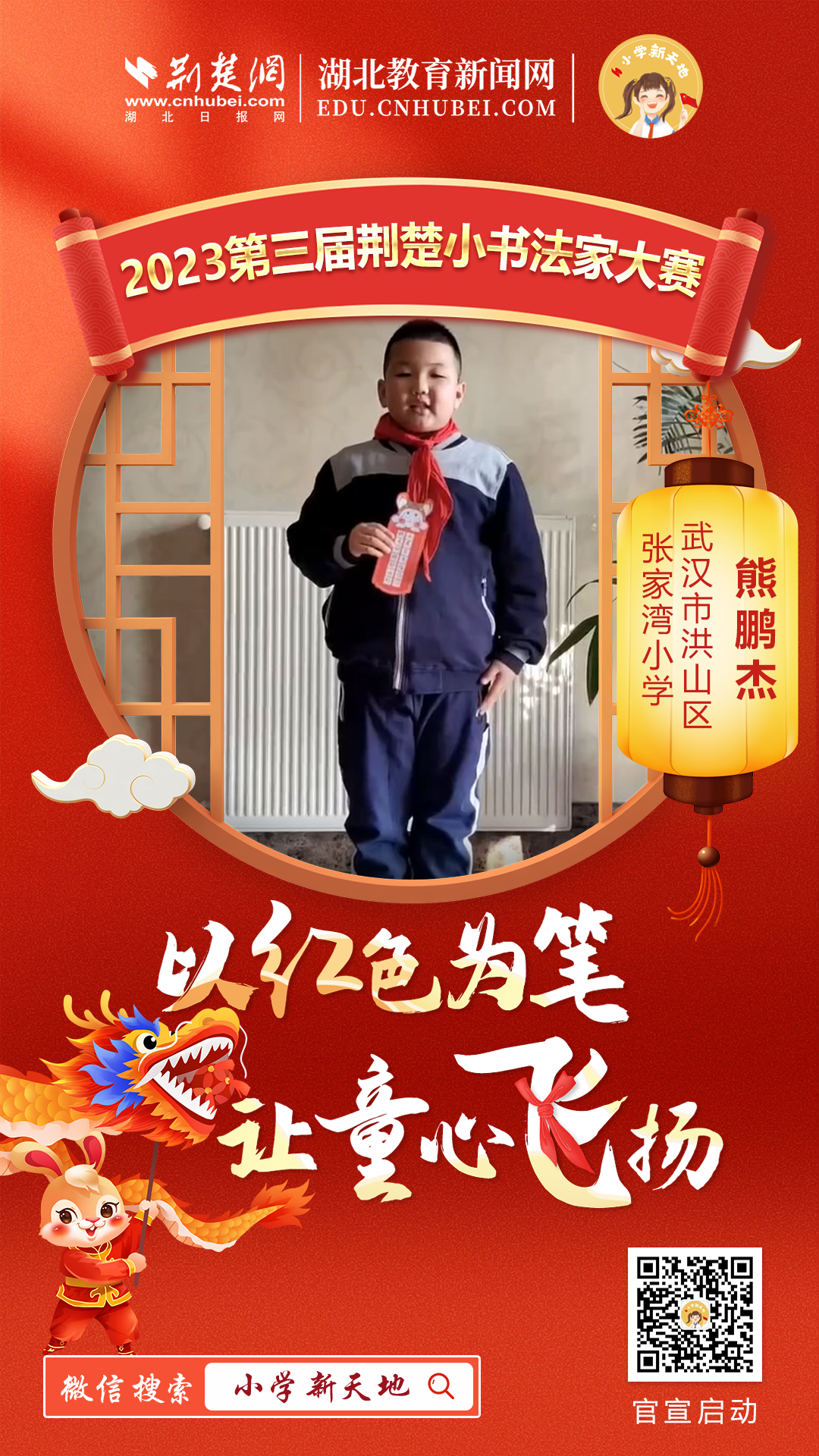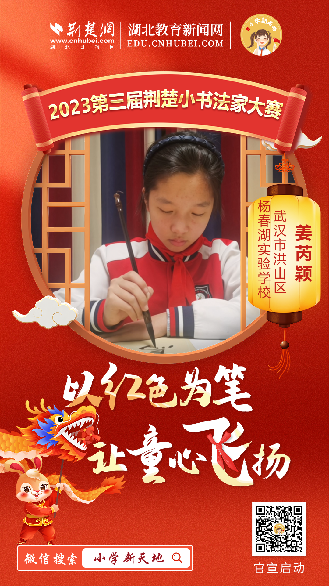 荆楚网(湖北日报网)讯(记者许文秀、何鹏、齐一璇、林杉、唐天琪)以笔之名,书写红色诗词;以诗为媒,传承红色精神。由荆楚网(湖北日报网)、湖北日报传媒集团“小学新天地”教育公众平台共同推出的“以红色为笔 让童心飞扬——‘小学新天地杯’2023第三届荆楚小书法家大赛”大型教育公益活动现已正式启动,有毅力、有审美、爱书法、爱学习的时代少年们快来参赛吧。