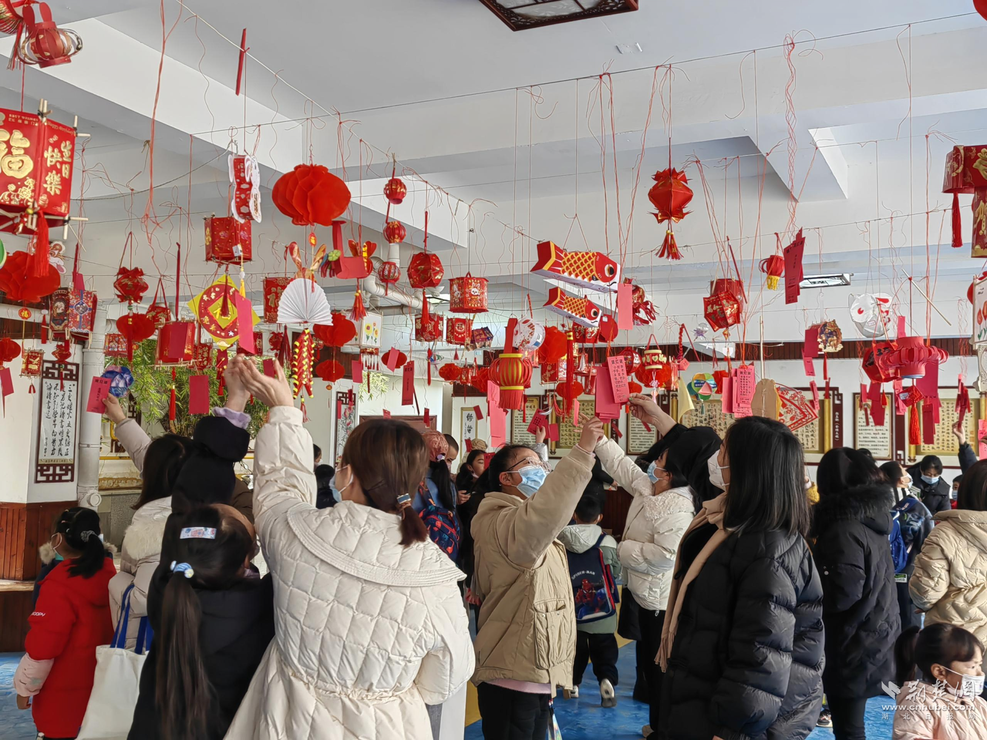 师生一起猜灯谜。学校供图