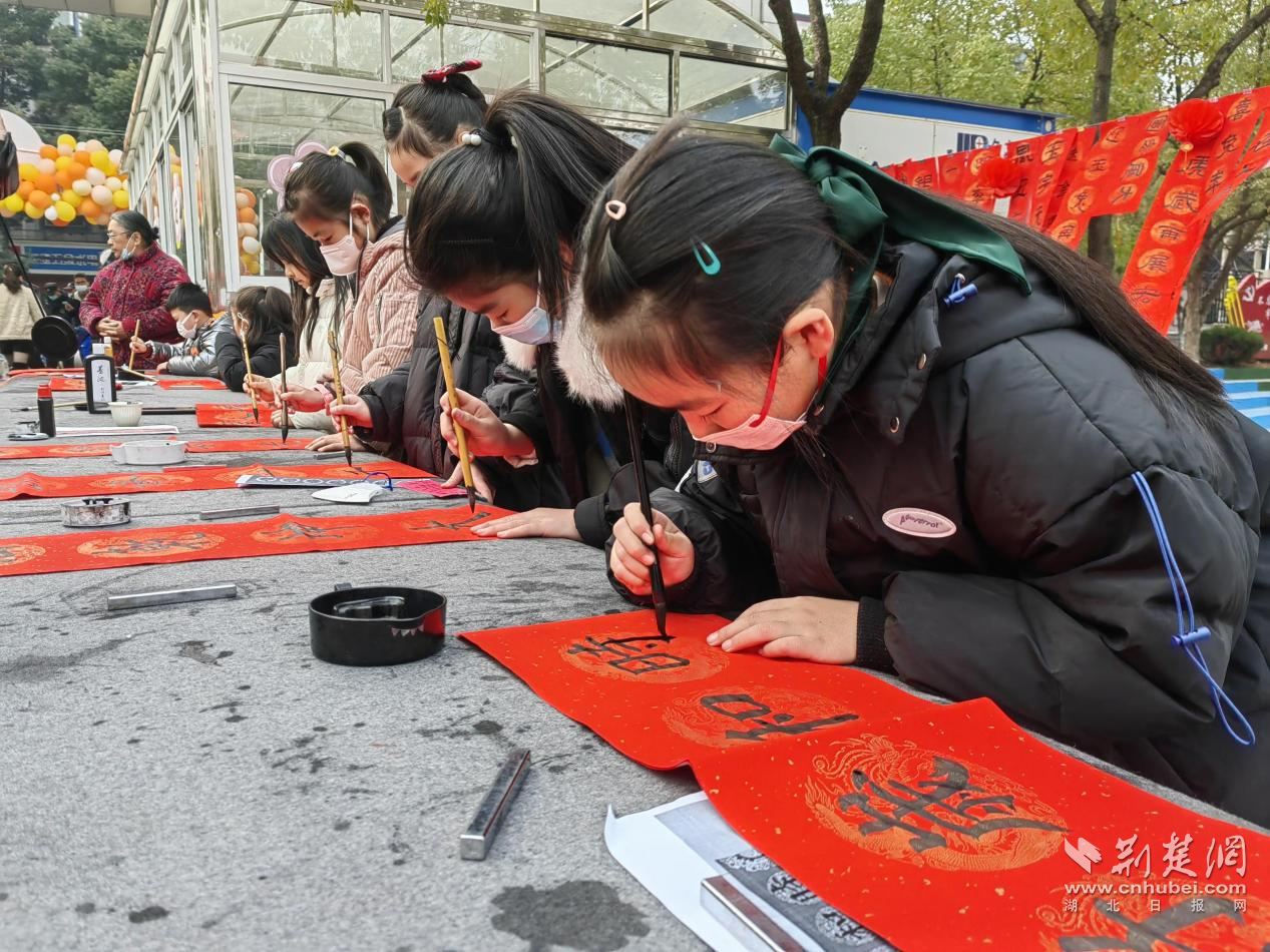 学生写春联。学校供图