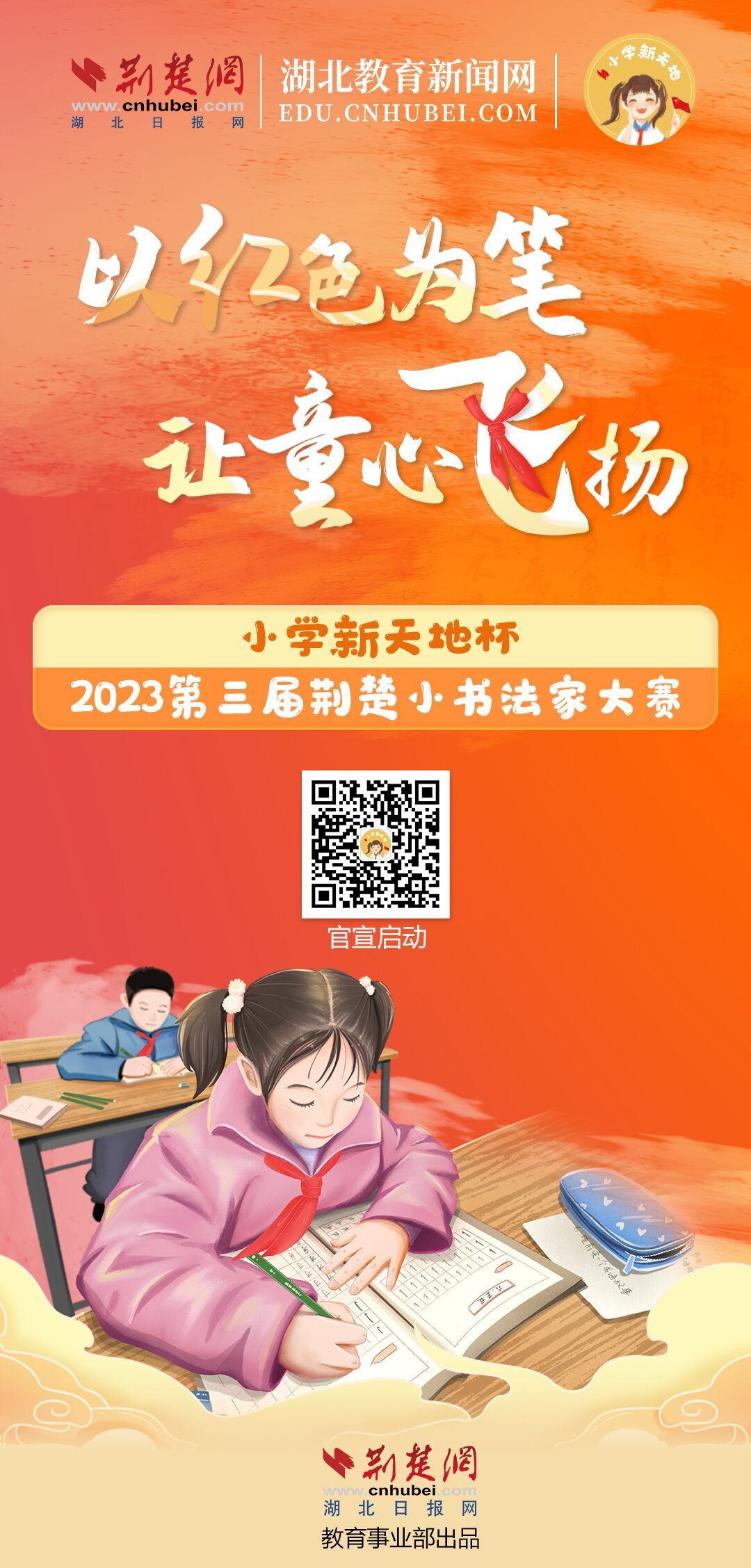传统文化润童心,笔墨传情践文明。为给全省小学生提供一个广阔的素质教育实践平台,助力学校建设成为弘扬主流价值的高地、涵育中华文化的家园,荆楚网(湖北日报网)、湖北日报传媒集团“小学新天地”教育公众平台充分发挥党网党媒的主流媒体主阵地作用,共同推出“以红色为笔 让童心飞扬——‘小学新天地杯’2023第三届荆楚小书法家大赛”大型教育公益活动,引导师生争做传统文化的参与者、践行者、传播者,夯实素质教育基础,筑牢教育强国建设之基,助力教育高质量发展。赛事面向全省小学生征集优秀书法作品,号召小学生们以笔之名,书写红色诗词,以诗为媒,传承红色精神,为“眼中有光、笔尖有力、腹中有书、心中有爱、胸中有志”的时代少年们搭建舞台,丰富学生的寒假生活,展示校园正能量精神风貌!