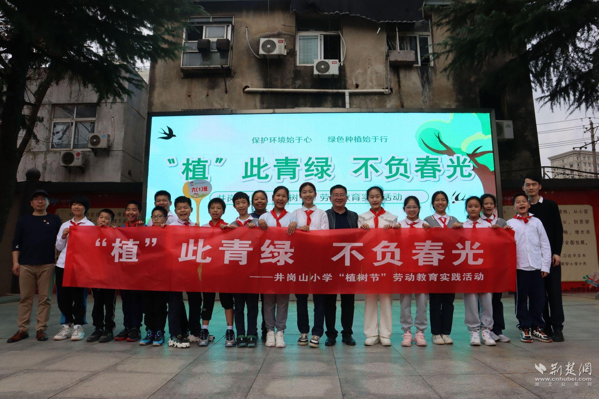 荆楚网(湖北日报网)讯(记者唐天琪)惊蛰时节万物苏,植树添绿正当时。一年一度的植树节来临,为了使孩子们能够亲身体验劳动的乐趣,感受美化环境的意义,增强学生爱绿护绿、保护环境的意识,激发热爱大自然的情感,武汉市洪山区井岗山小学组织开展“‘植’此青绿 不负春光”植树节主题劳动教育实践活动。