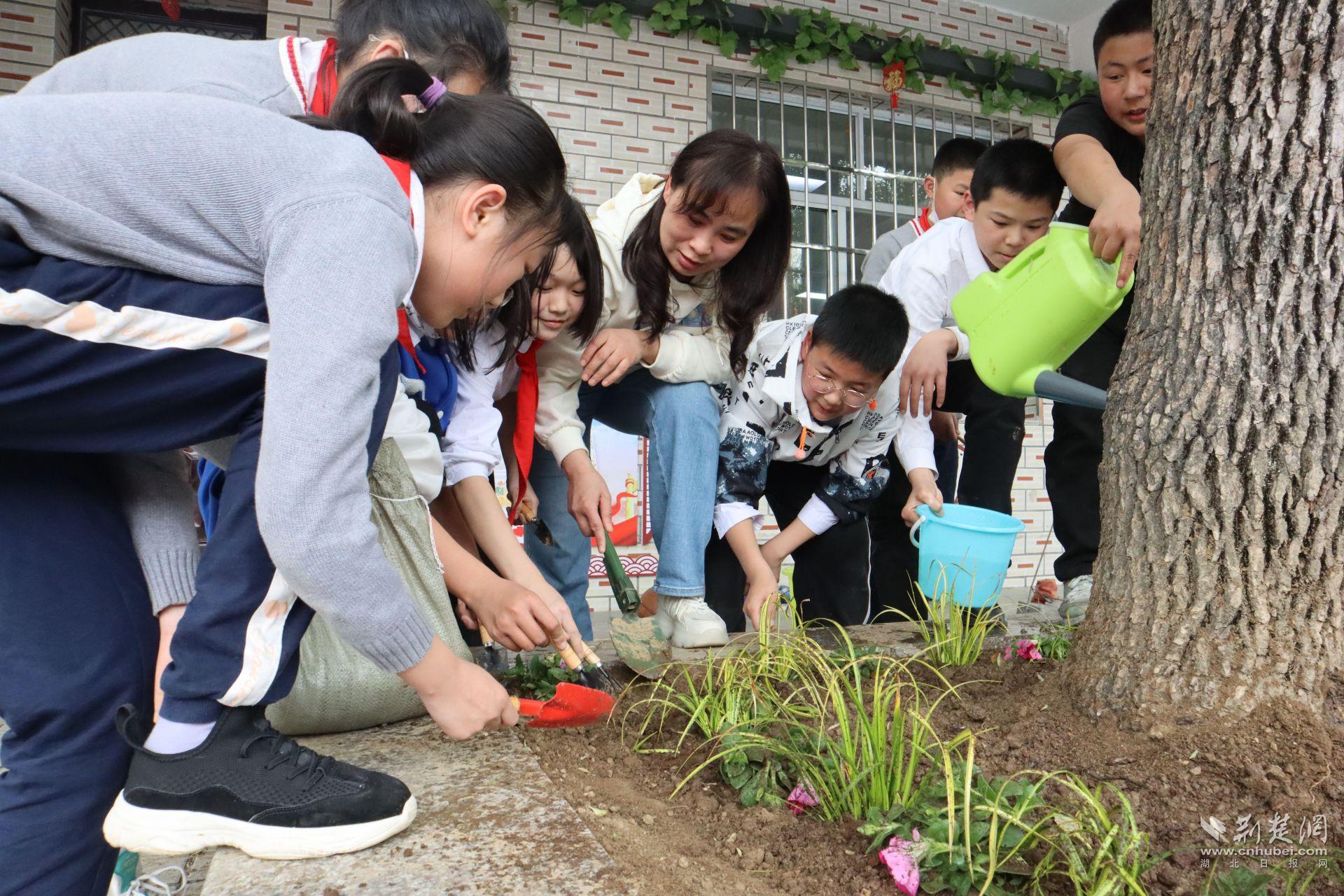 下午3点,植树劳动实践活动正式开始。 一二年级各班成立“添绿”小队,用自己带来的绿植装扮教室。孩子们相互介绍自己的带的植物品种,争相认领、保护自己班级的小绿植。三到六年级各班成立“植绿”小队,在班主任和党员教师们的带领下,各个小队到达指定的植绿地点,种植树苗和花苗。同学们分工合作,松土、施肥、埋土、踩实、浇水,用实际行动绿化校园,美化环境,用勤劳的双手打开了一扇扇“绿”的天窗。