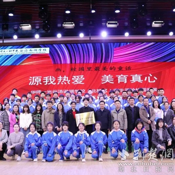 荆楚网(湖北日报网)讯(记者何鹏 通讯员齐毅 李国华)“用爱心和画笔,为校园添色增彩。”3月中旬,华中师大一附中光谷汤逊湖学校(北校区)开展了“源于热爱,师生同绘校缘”主题画展,同时举行了唐自强美育工作室成立仪式。