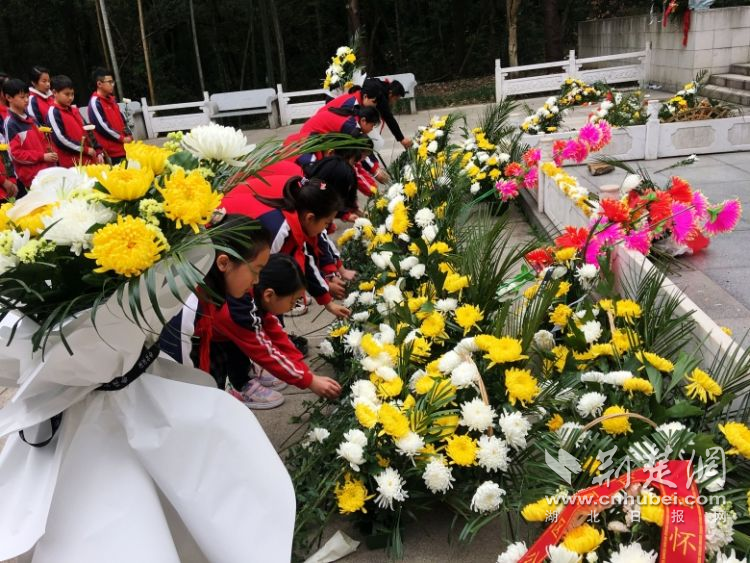 少先队员为革命烈士敬献鲜花。学校供图