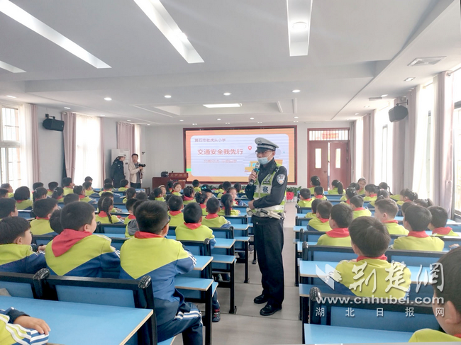 11日当天,该校邀请到黄石港公安分局警察进校开展交通安全教育。主讲人为张警官和大队指导员王警官。