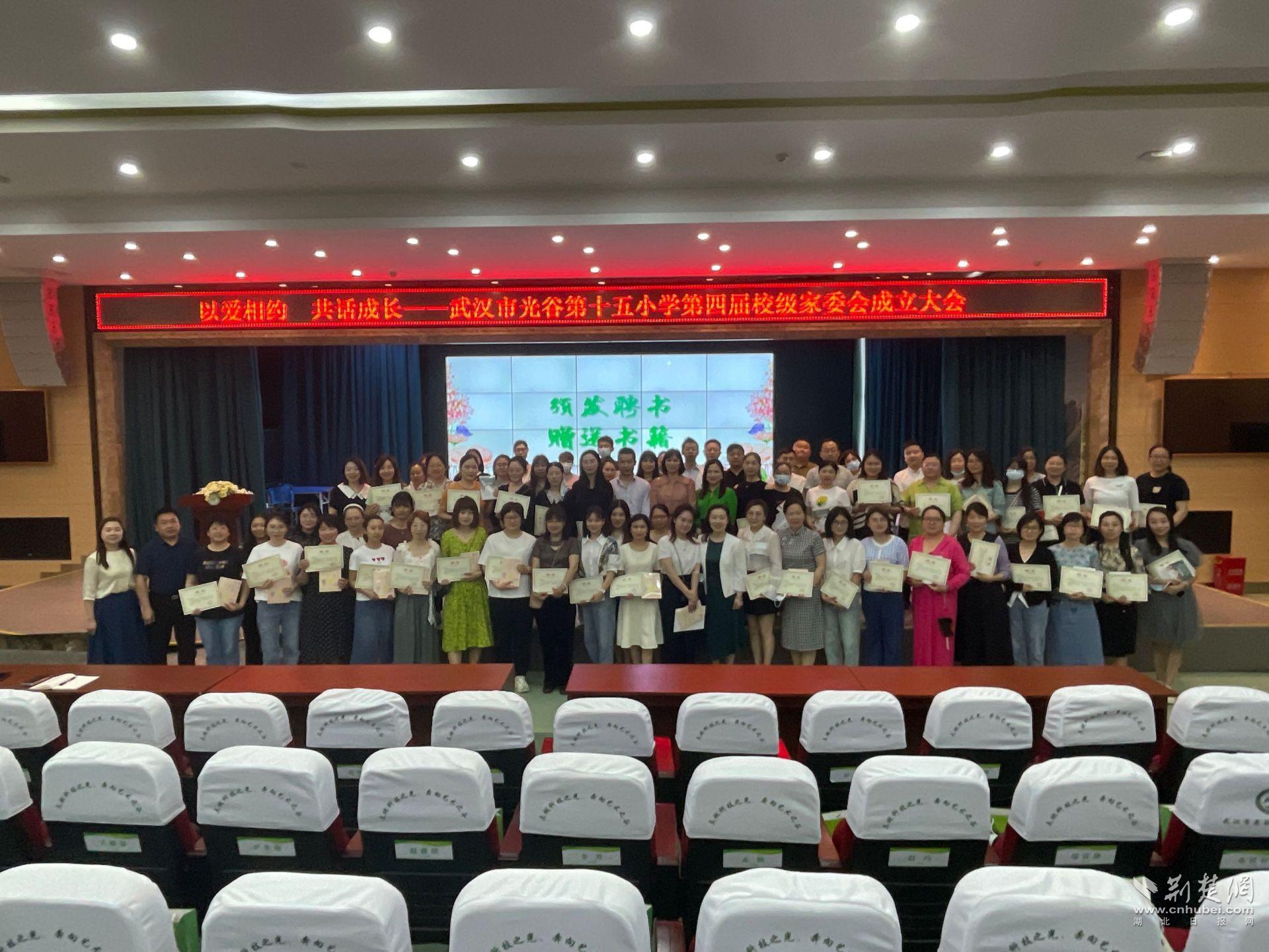 73位家委参观完校园,走进报告厅,参加武汉市光谷第十五小学第四届家委会议。李惠校长以《教育的温度》为题讲话, 温暖的寄语传递着爱的温度;黄华双书记宣读《武汉市光谷第十五小学第三届家委会职责》,诠释着爱的担当;校级家委会主席506班的黄筠雅爸爸进行发言,一纸聘书、家校一体,一份责任、共建共赢。