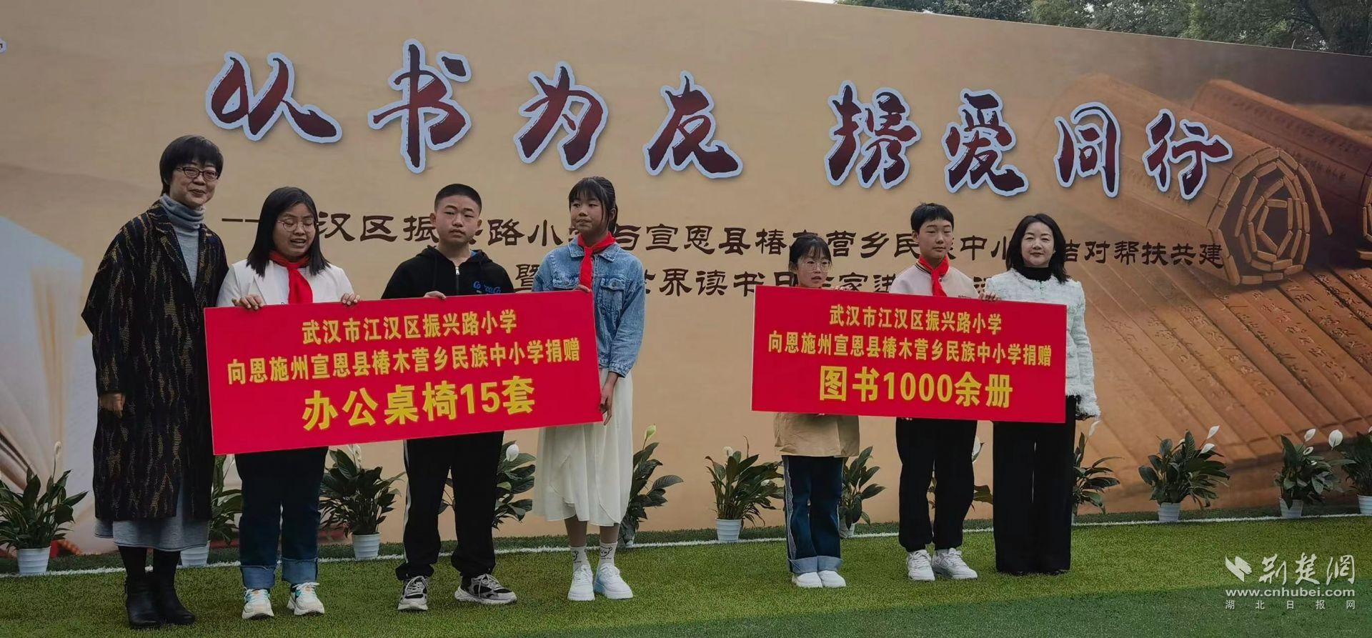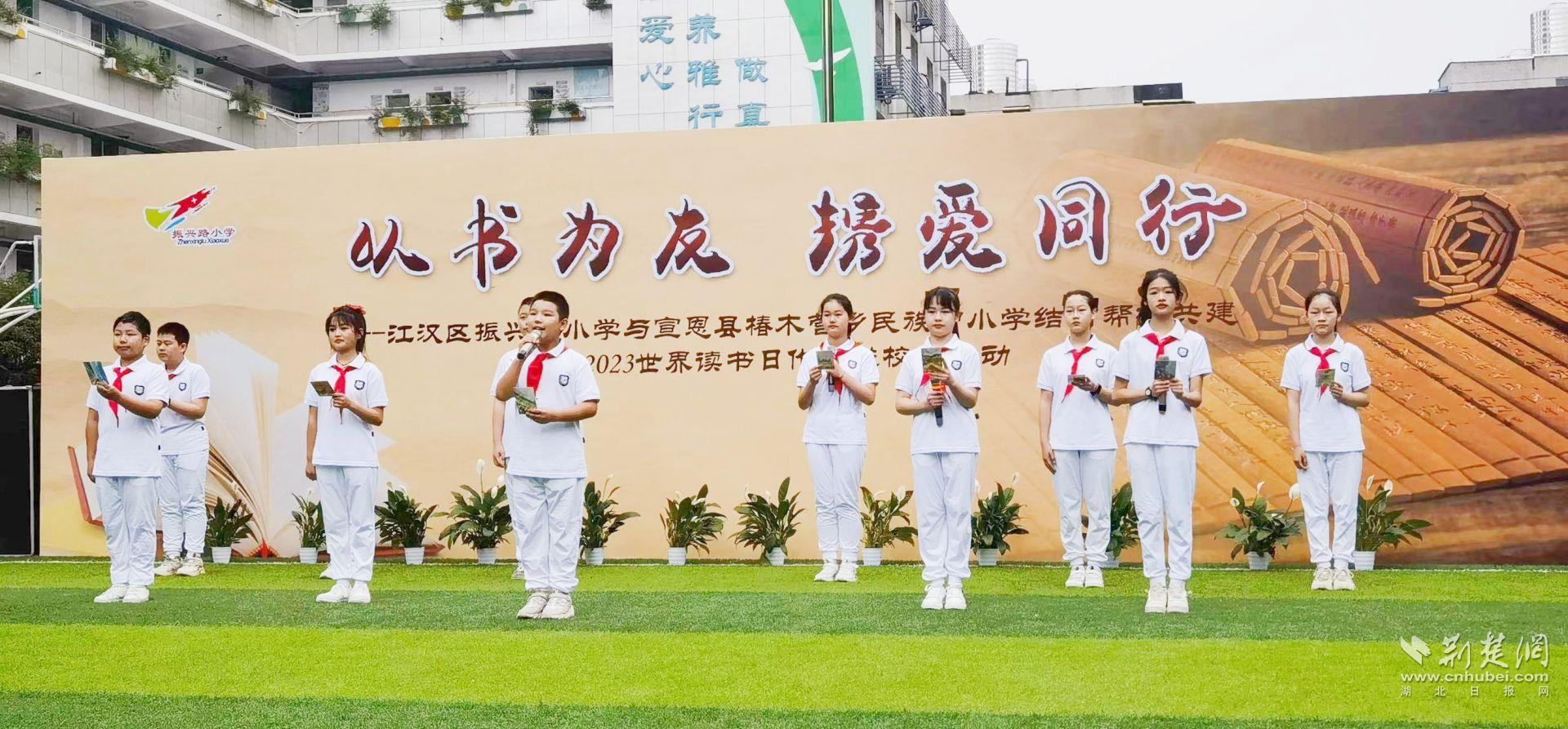 荆楚网(湖北日报网)讯(记者唐天琪 通讯员周栋、蔡诗琪)为深入推进书香校园建设及“绿书签”健康阅读活动,让阅读伴随孩子们健康成长,4月25日,武汉市江汉区振兴路小学邀请结对帮扶学校恩施州宣恩县椿木营乡民族中小学的师生代表,一同开展了“以书为友 携爱同行”知名作家进校园读书活动。让书成为交流互助的纽带,以书会友,共同成长。
