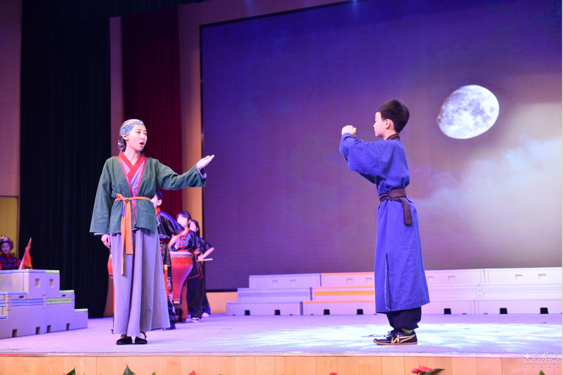 由各年级学生、各学科教师共同演绎的情景历史剧吸引了在场观众的眼球。此剧以《满江红》为故事原型,演绎抗金名将岳飞的成长之路,让学生在演绎中领悟民族英雄的精神与品质。