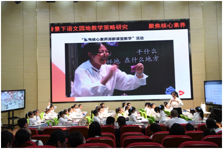 实验小学校长卢欣玲和教师毕金梅介绍了实验小学培养语文教师的专业成长路径。“树立大单元意识,构建学习任务群,聚焦核心素养,深耕课堂教学,是每一位小语人追寻的远方。”