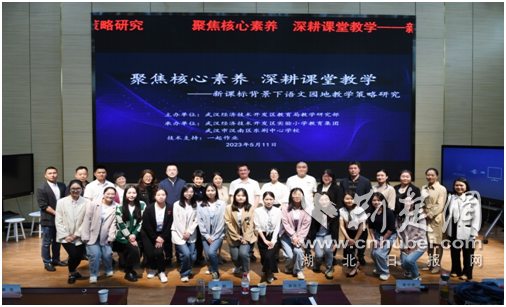 荆楚网(湖北日报网)讯(记者林杉 通讯员华美幸 邵露 谢苗)5月11日上午,武汉经开区各小学100余名语文骨干教师齐聚武汉经开区实验教育集团海伦堡小学,开展“聚焦核心素养,深耕课堂教学——新课标背景下语文园地教学策略研究”主题教研活动,共同踏上一场智慧成长的逐梦之旅。