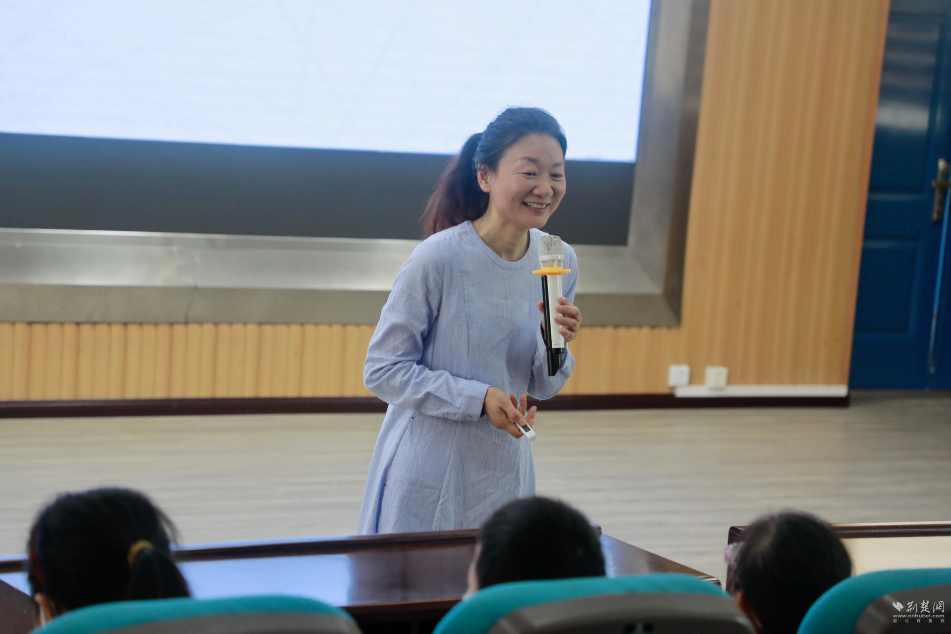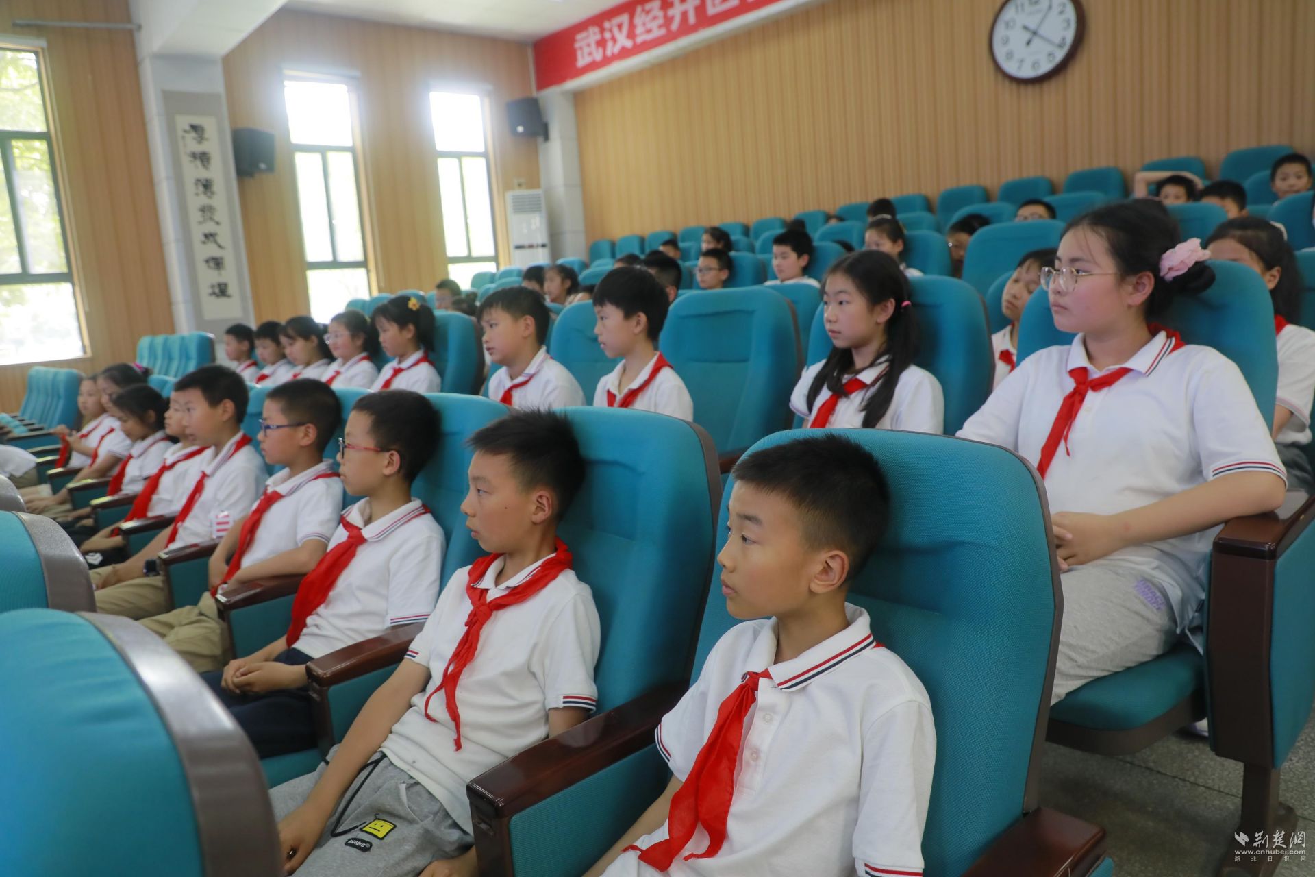荆楚网(湖北日报网)讯 (记者林杉 通讯员李欢 郑瑾蕊)人间最美五月天,书韵飘香满园情。近日,武汉经济技术开发区神龙小学教育集团三所学校军山小学、湖畔小学和神龙小学的100多位学生齐聚神龙小学报告厅,共享一场生动有趣的自然朗读课。武汉青少广播主持人新月姐姐给同学们带来了《自然朗读诵经典》讲座。