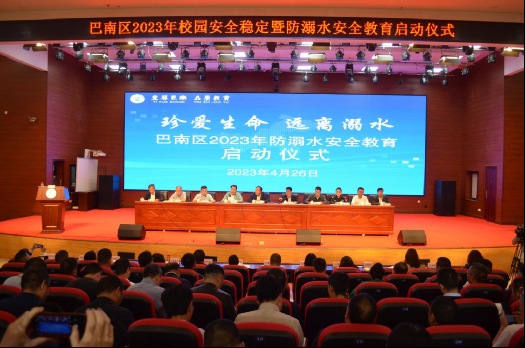 巴南区2023年防溺水启动仪式暨校园安全稳定工作推进会在龙洲湾中学举行。
