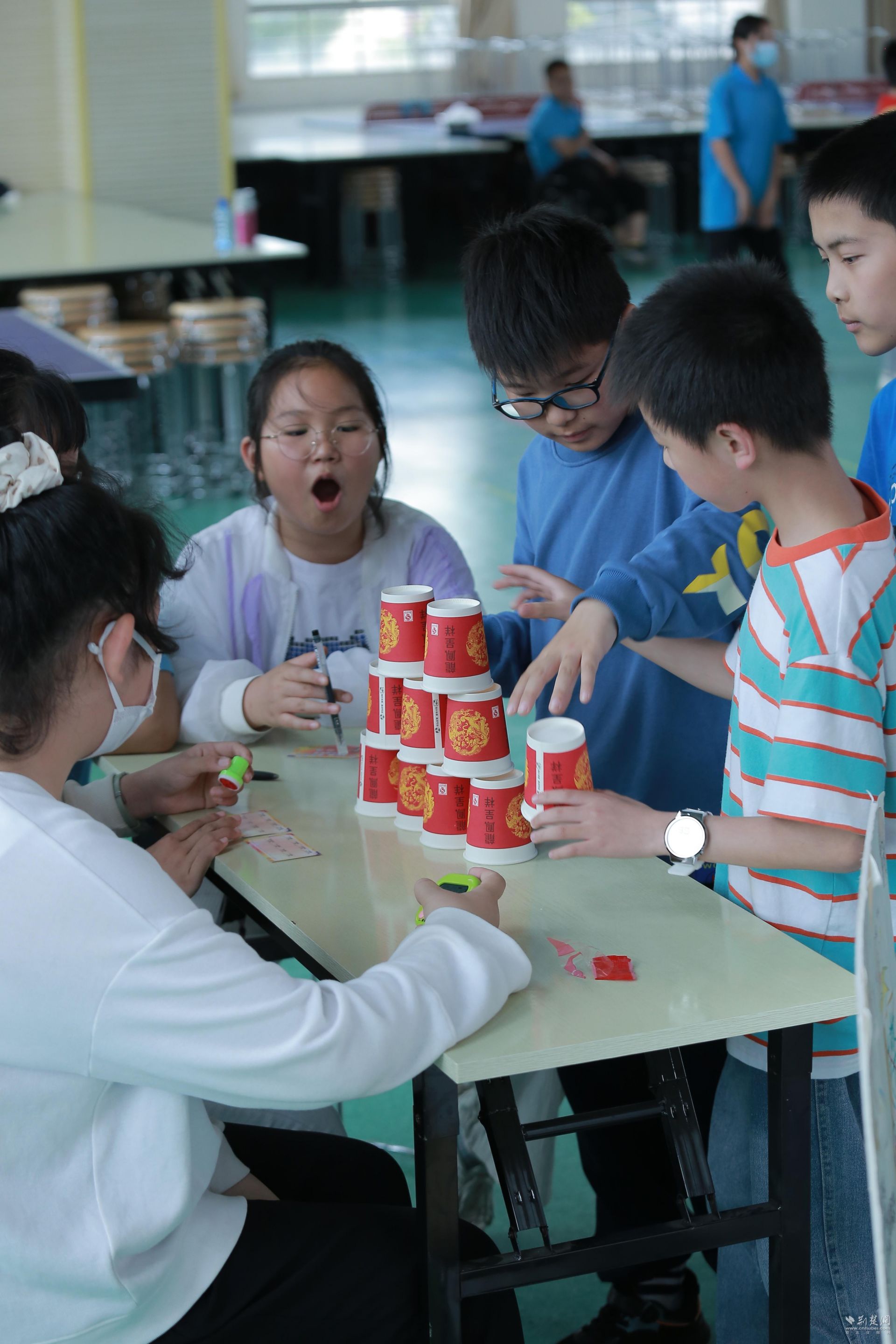 你画我猜、合作搭纸杯、不倒森林……每个班策划不同游戏,孩子们热情参与,意犹未尽。五(5)班刘宇浩所有关卡都通关成功,获得了8枚印章,兑换了最大的奖品:文具盲盒一个。他说:“最开心的就是同学邀请我加入团队的时候,我感受到了与人合作的快乐,也收获到了友谊。”