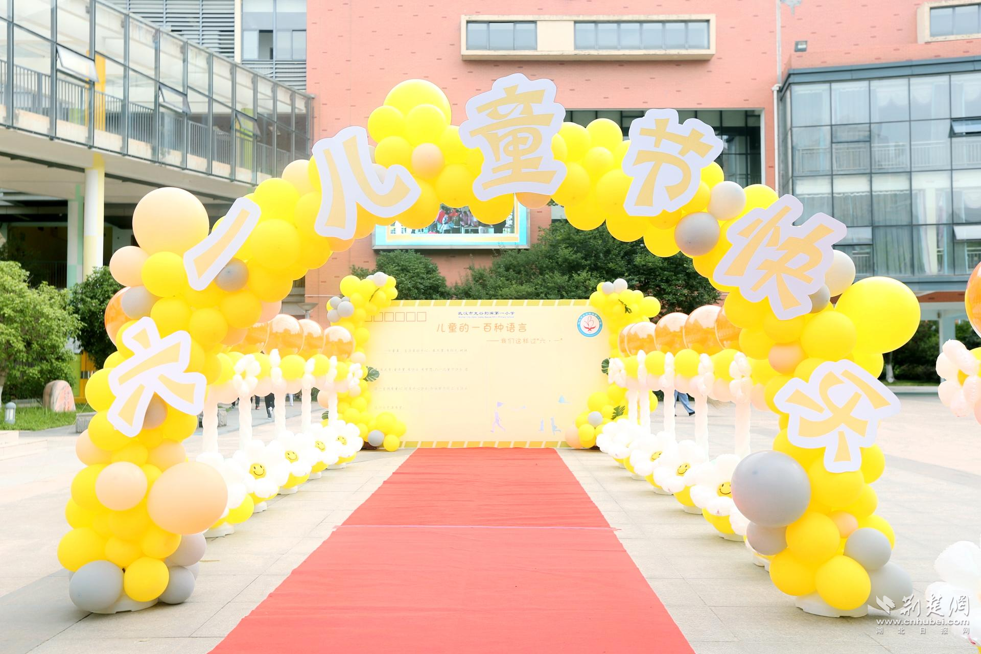 荆楚网(湖北日报网)讯(记者许文秀、唐天琪 通讯员周颖)告别芬芳的五月,迎来童趣的六月。六月是童年的摇篮,是梦想初升的地方。5月31日,武汉市光谷豹澥第一小学举办了“快乐六一,幸福童年”的“六一”艺术节活动。学校精心准备了黄色系拱门和气球,映衬着孩子们入校的身影,为炎热的夏天,带来一抹清爽。