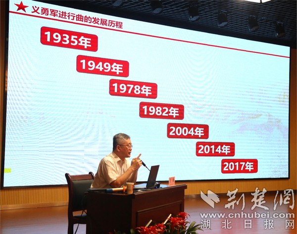 “我们的国歌有84个字,37个小节,标准时长是46秒,这是每一个中国人都应该牢记的!”于海坚信,“我们的国歌是最好的国歌!”报告会上,他从“国歌的概述,《义勇军进行曲》的发展历程,国歌崇高神圣、至高无上,国歌是家国情怀的生动教材”等内容,深入透彻地讲解了国歌的历史变迁、承载情怀、时代意义。