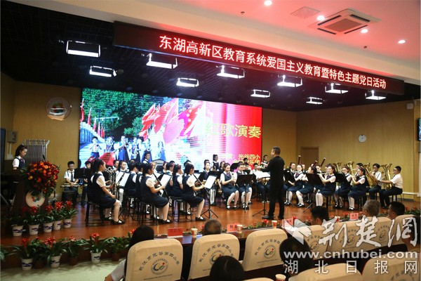 荆楚网(湖北日报网)讯(记者何鹏 通讯员戴雪纷 陈川洋)6月1日上午,东湖高新区教育系统爱国主义教育暨特色主题党日活动在武汉市光谷第四小学举行。本次活动特邀中国著名指挥家、“国歌守护者”、第十一届、十二届全国政协委员于海同志作“我们的国歌”主题报告,东湖高新区教育局机关、教发院、各中小学幼儿园党员干部及音乐教师代表集中学习。会议由东湖高新区教育局党委书记、局长向华同志主持。