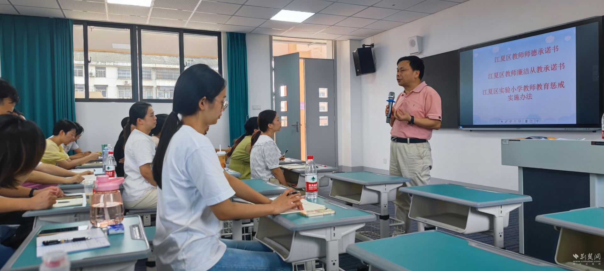 荆楚网(湖北日报网)讯(记者林杉 通讯员张超)为了提升新入职教师职业素养和业务能力,助力他们更快地融入教育教学工作,从8月26日开始,江夏区实验小学教育集团教师发展中心利用预备周的两天时间对新入职的80名教师进行岗前专题培训。培训内容涉及学校文化理念、办学特色、师德教育、班级管理与建设、智趣课堂理念、学科教学设计与实施、教材教法解读、现代教育技术的运用等。