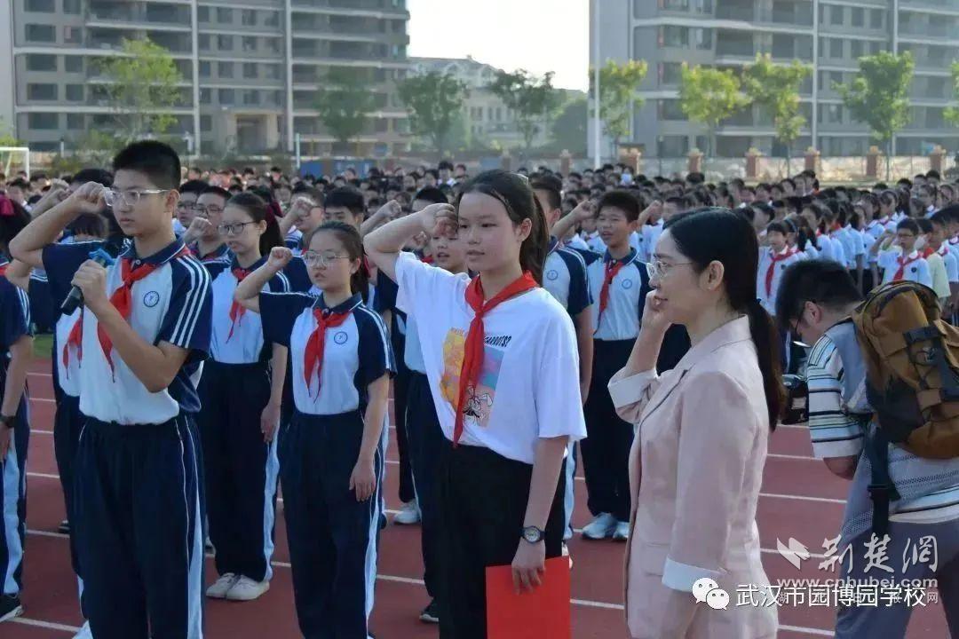 庄严而神圣的国旗在操场上冉冉升起,全体师生向国旗敬礼。国歌雄壮,国旗飘扬,胸怀祖国,播种信念与希望。在朝阳下,园博园学子们昂首挺胸、高举右拳,集体宣誓。“勤奋学习、志存高远,顽强拼搏、积极作为。”宣誓声澎湃激昂、热情洋溢,展现了作为园博园人昂扬向上的精神风貌。