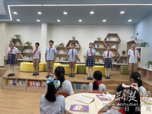 同学们利用中午午饭后的时间,到“学生阅览室”进行阅读,并将自己喜欢的书籍推荐给同伴。该校红领巾广播员将自己阅读后的感受通过红领巾广播站分享给同学们,号召大家读好书,好读书。