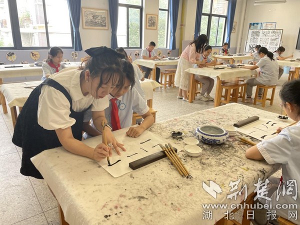 为了树立学生写规范字的意识,学校美术组老师耐心指导学生一笔一划写好每个字,让学生养成良好的书写习惯。
