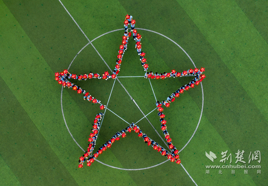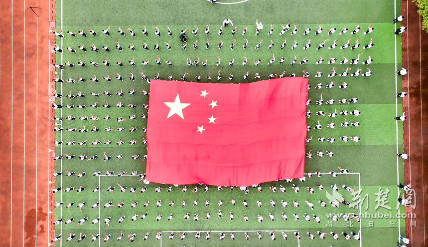 学生们手持红色五星气球在操场上摆出五角星方阵,一面巨大的国旗在操场上传递。鲜艳的五星红旗下,全场齐声喊出:“祖国妈妈,生日快乐!”声音响彻校园,振奋人心。