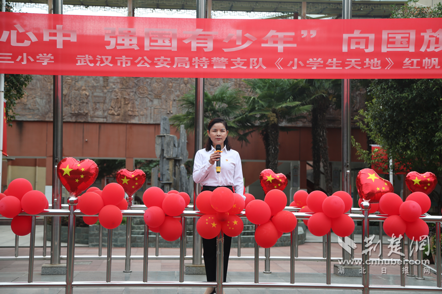吴家山第三小学学生代表和红帆小记者在国旗下讲话,用“致敬国旗 强国有我”的铮铮誓言,表达出新时代少年儿童的爱国情怀。