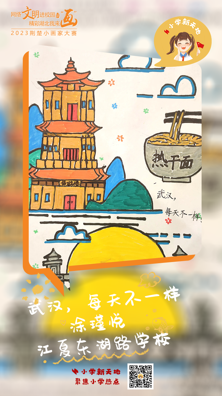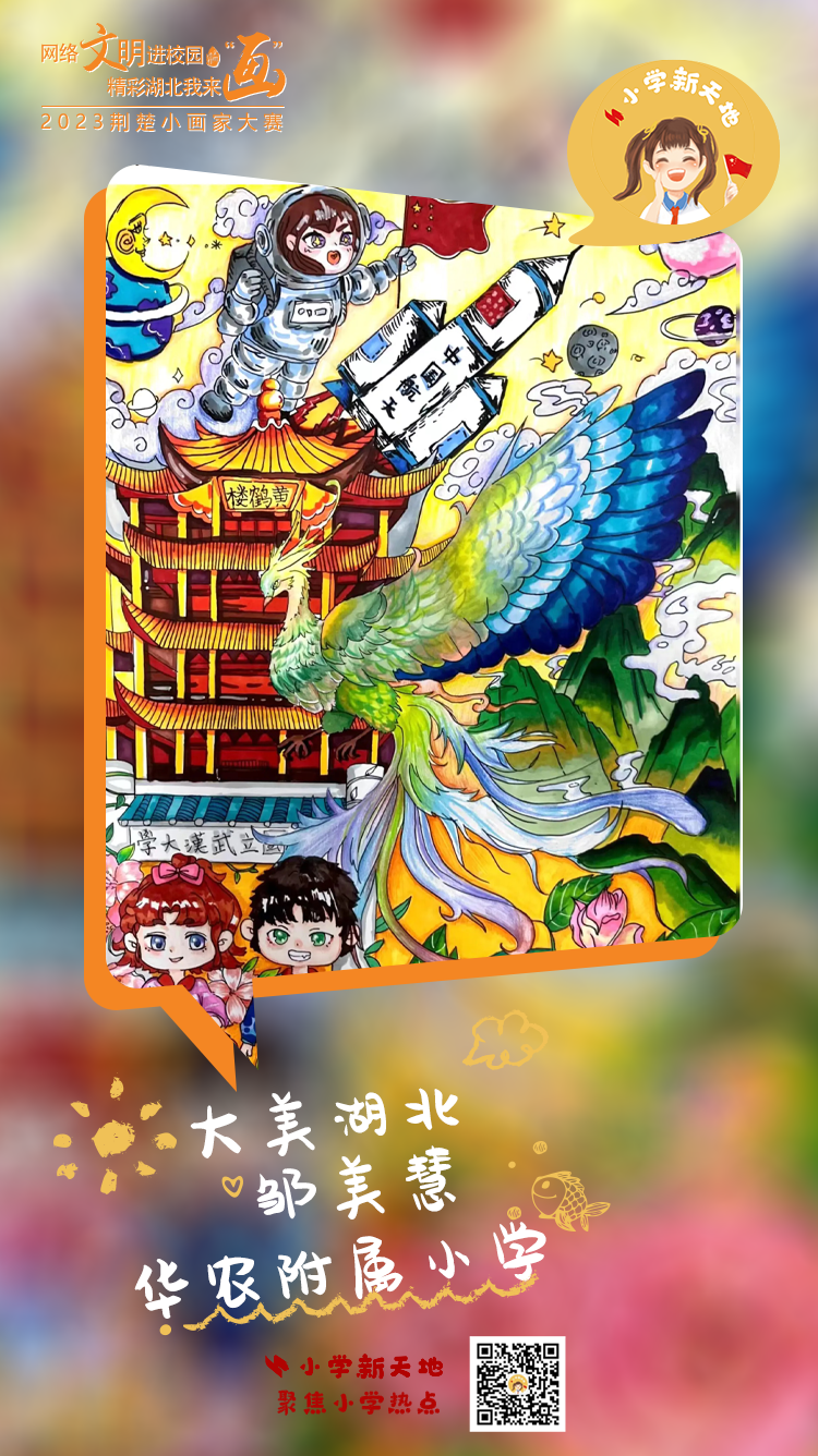 网络文明进校园,精彩湖北我来“画”。9月1日,荆楚网(湖北日报网)推出“网络文明进校园·精彩湖北我来‘画’——2023荆楚小画家大赛”大型教育公益活动。大赛为湖北省2023年“争做中国好网民”工程暨第十五届网络文化节活动项目,采取线上报名的方式,面向全省小学生们征集优秀绘画作品,号召小学生们共同描绘文化之美、家乡之美、校园之美,把校园文明新画卷绘就在精彩湖北征途上。