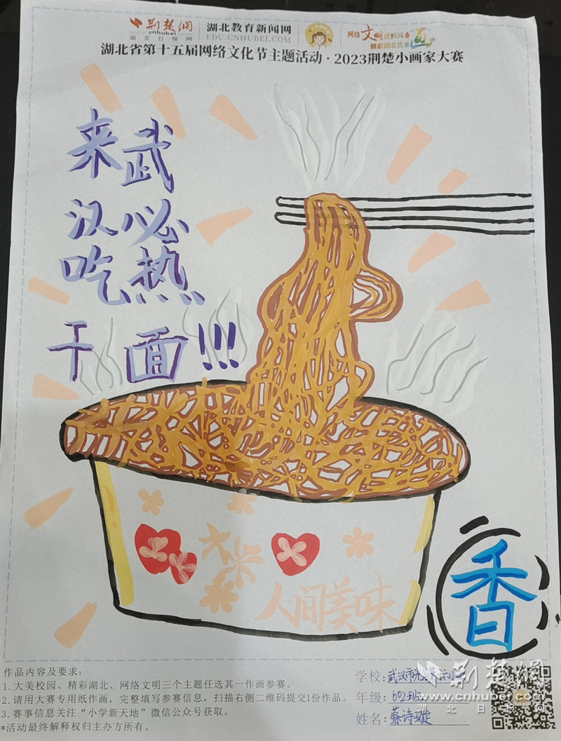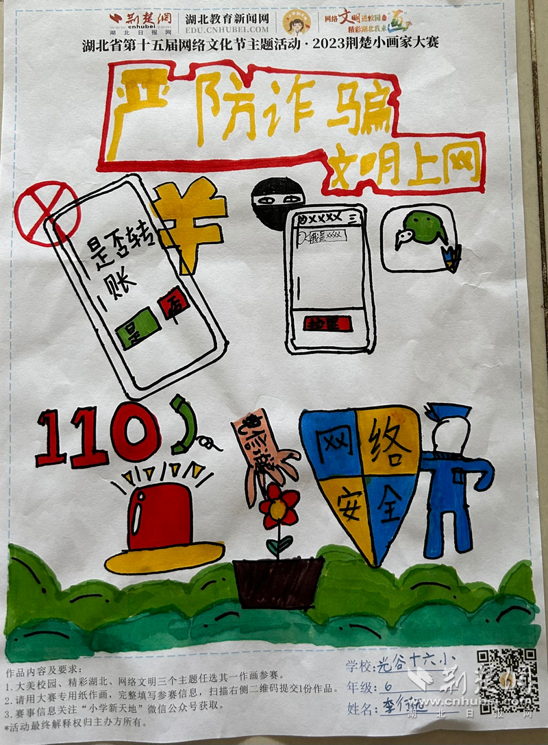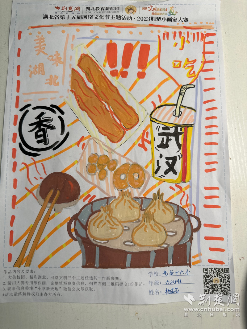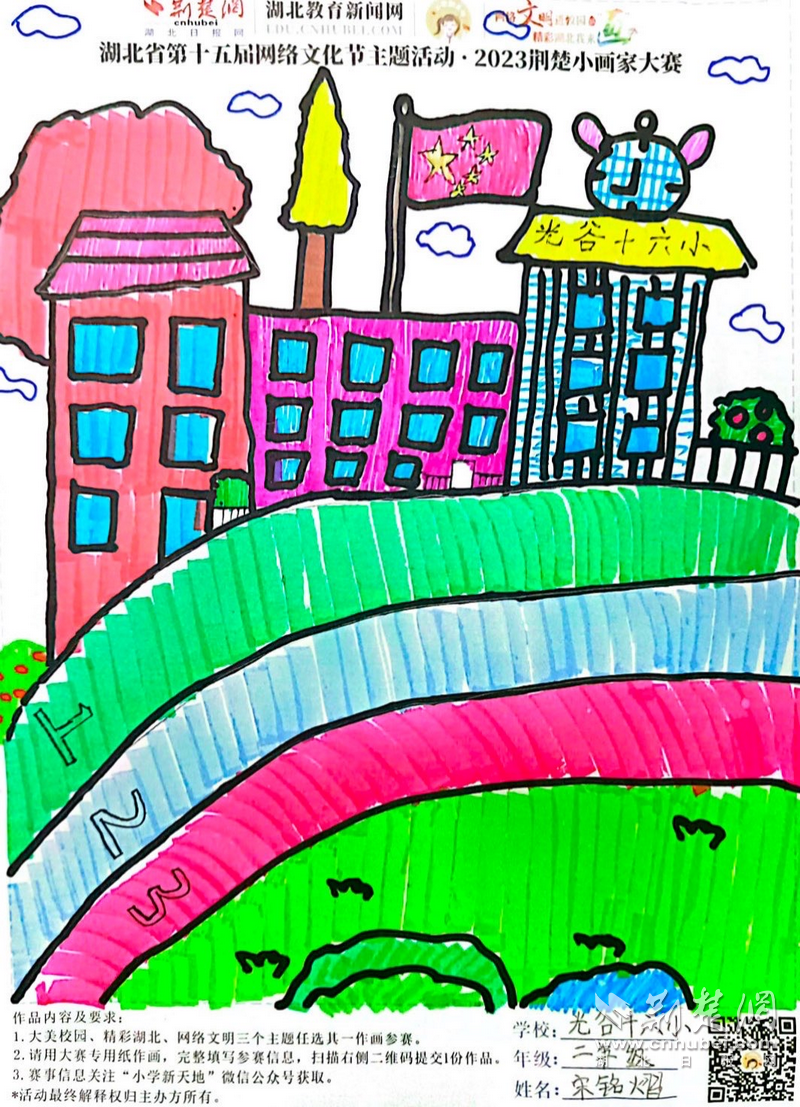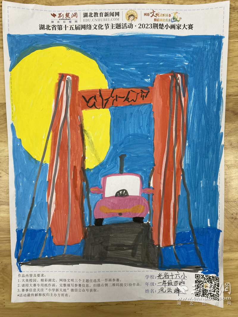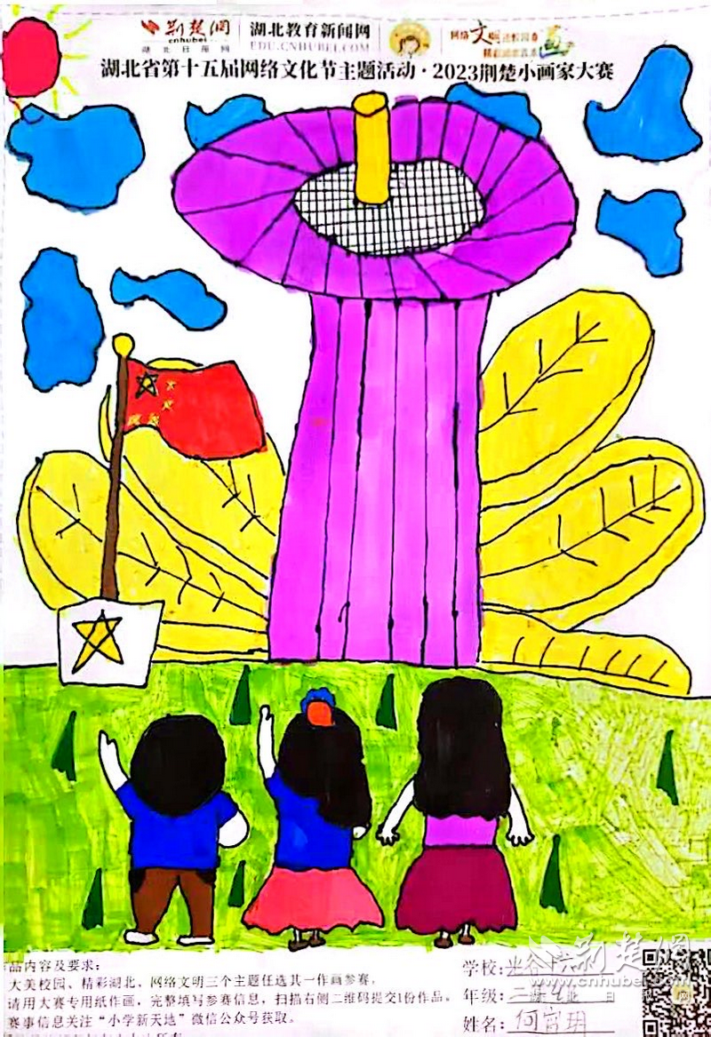 荆楚网(湖北日报网)讯(记者许文秀 通讯员杨梦汝)绘出文明新风尚,小学生们有“画”说。今年9月,荆楚网(湖北日报网)推出“网络文明进校园·精彩湖北我来‘画’——2023荆楚小画家大赛”大型教育公益活动,面向全省小学生们征集优秀绘画作品,号召小学生们共同描绘文化之美、家乡之美、校园之美。