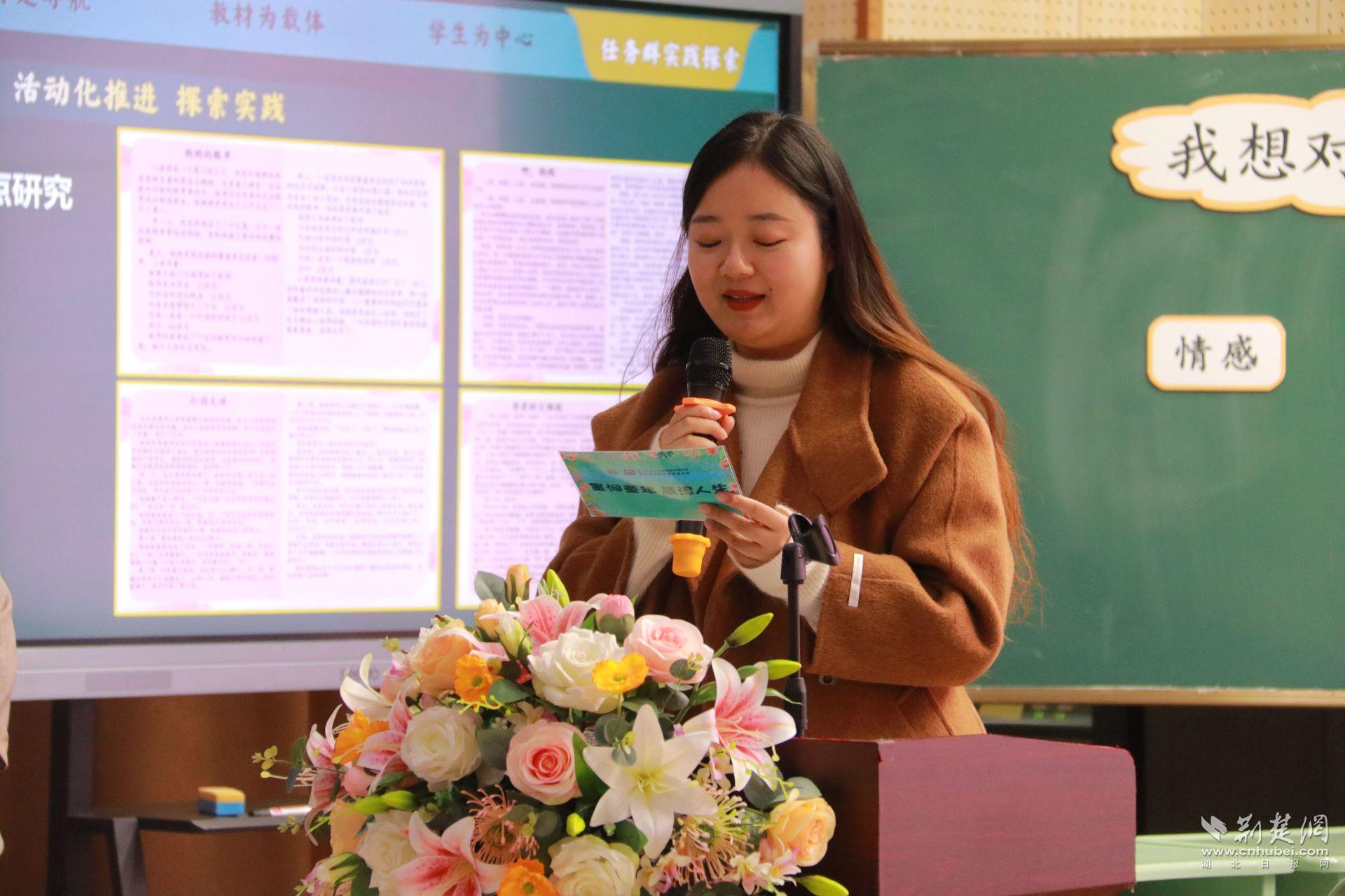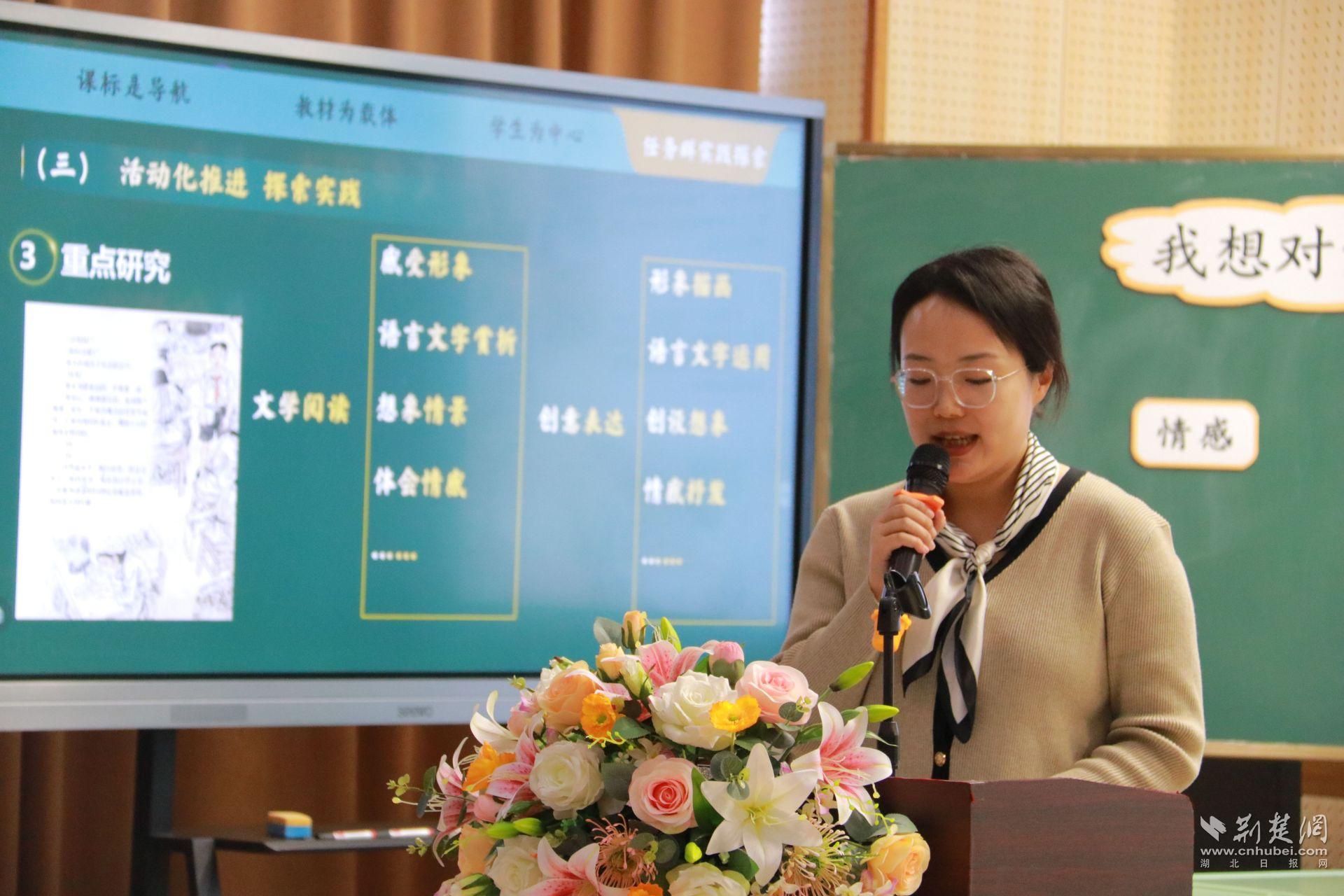 授课结束后,汉阳区墨水湖小学教联体语文团队桂智敏、余蕾、郭文佳、苏力四位教师对小学语文大单元任务群教学设计进行了全方位解读。