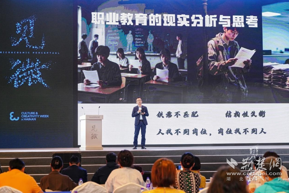 在4月11日上午举办的“学历教育VS能力教育”主题研讨会上,来自教育界、产业界的代表以及学生汇聚一堂,共同探讨人才培养的新方向。湖北建院校长董文斌发表了题为“职业教育培养文旅复合型新青年人才”的主旨演讲。
