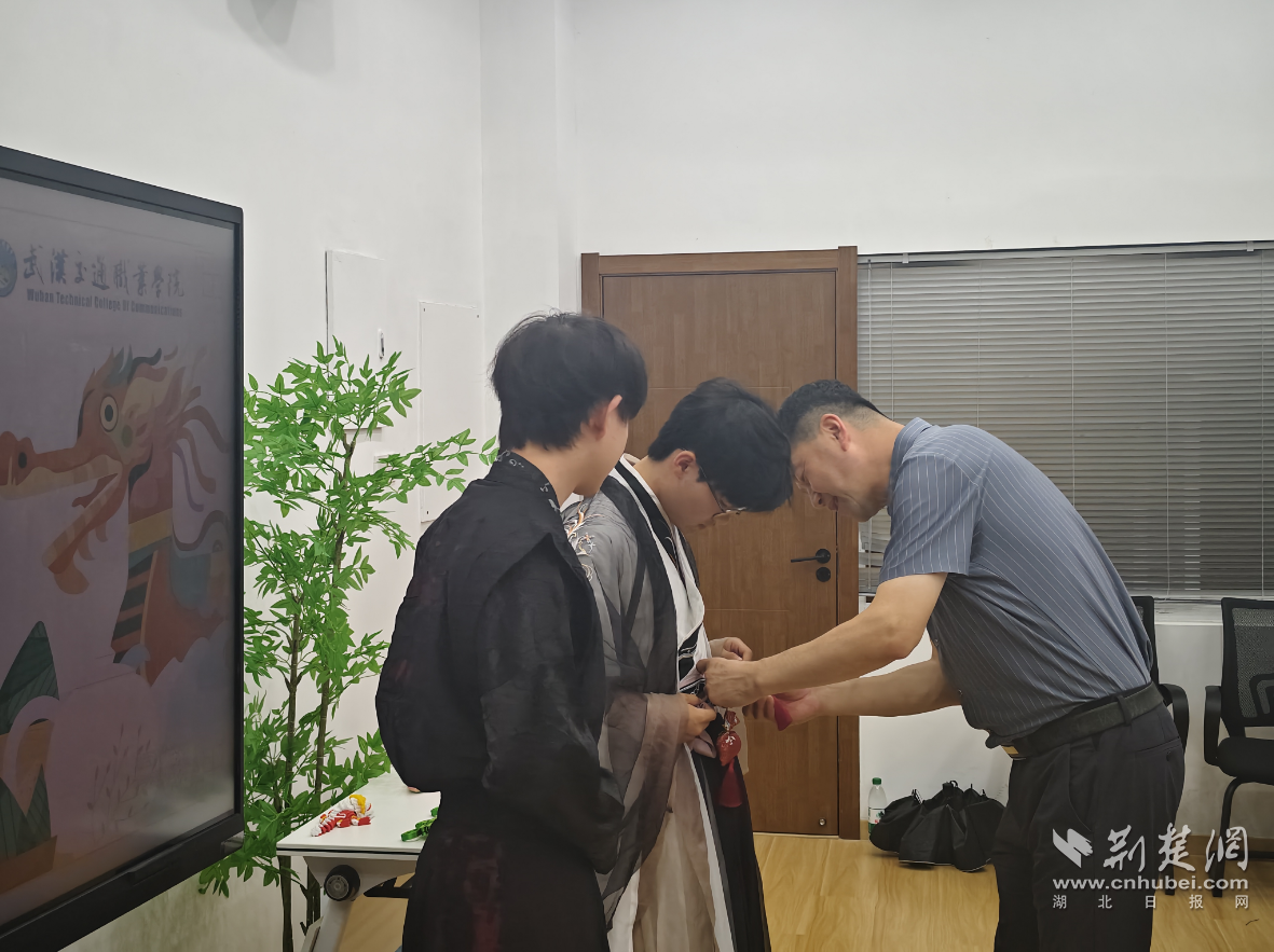 荆楚网(湖北日报网)讯(记者齐一璇 通讯员邓俊芬)粽叶飘香,情满校园。5月29日,武汉交通职业学院一站式学生社区里,党委书记杨震与智能制造学院师生围坐在一起,手中拿着五彩的丝线和手工材料,热火朝天地制作香包。大家边聊天边缝制,其乐融融。