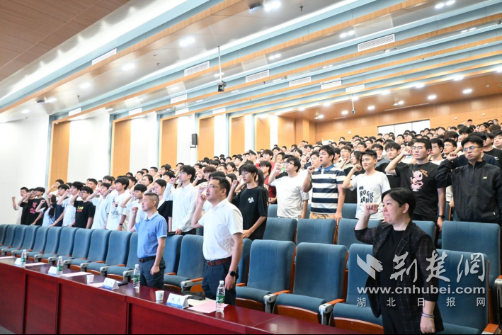 授课中,一个庄重而充满力量的环节将现场氛围推向高潮。涂善东深情分享了他亲笔题写的《工科毕业生誓言》,并带领全体与会师生庄严宣誓:“公众安全,永在首位;履职专业,精益求精;言行如一,惟诚惟信;进取不懈,矢志创新。”铿锵有力的誓言在报告厅内回荡,彰显了工科学子对责任、专业、诚信与创新精神的坚定承诺。