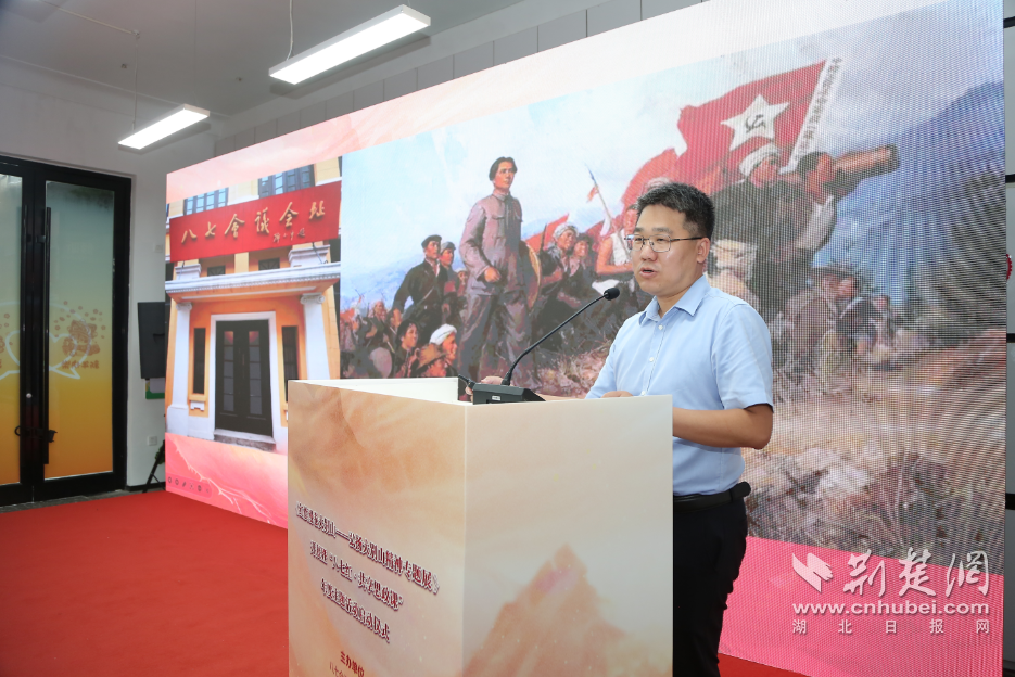 荆楚网(湖北日报网)讯(记者齐一璇 通讯员皮依冉 实习生李彤)8月7日上午,第一场秋雨飘落在江城街头。在八七会议会址纪念馆旁的江岸青年之家,“红旗漫卷大别山——弘扬大别山精神专题展”开展暨“八七红·共享思政课”年度主题活动启动仪式正在进行。