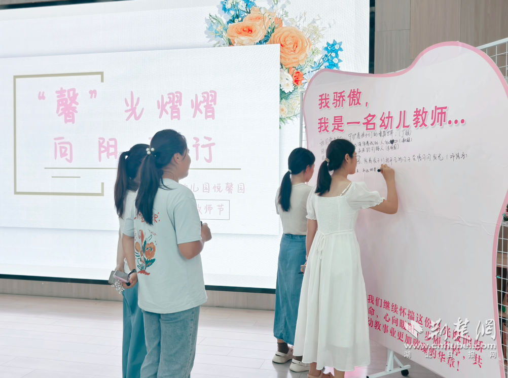 荆楚网(湖北日报网)讯(记者许文秀 通讯员陈方敏、易林敏)为弘扬教育家精神、加强师德师风建设,激发广大教师的职业荣誉感和育人使命感,9月8日至10日,武汉市洪山区第一幼儿园悦馨园党支部、工会及团支部联合策划并组织开展了以“‘馨’光熠熠 向阳而行”为主题的教师节系列庆祝活动。