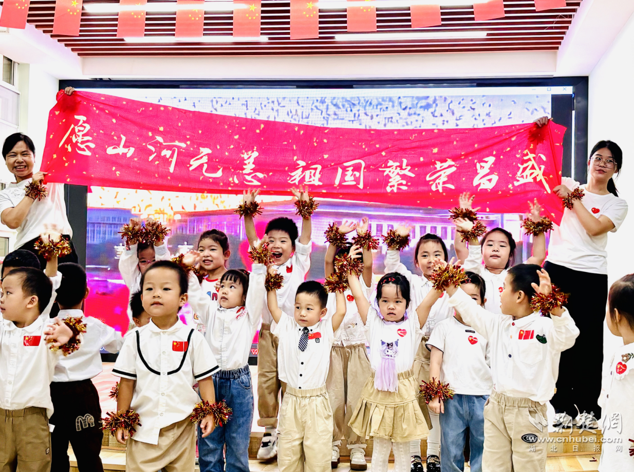 荆楚网(湖北日报网)讯(记者何鹏 通讯员刘佳莹)9月28日上午,江汉区童趣幼儿园绿梦剧场内歌声稚嫩嘹亮。孩子们身着统一服装,挥舞自制小红旗,以纯真嗓音开启“‘童’声唱红歌 ‘童’心向祖国”主题活动。全园师幼与家长代表齐聚,在红色旋律中喜迎国庆,共同将红色思政教育融入日常、播撒爱国的种子。