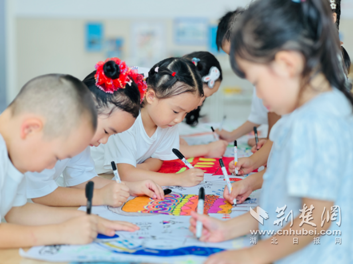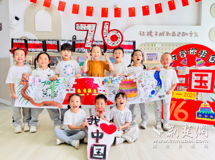 荆楚网(湖北日报网)讯(记者何鹏 通讯员江珊)童心迎国庆,共筑中国梦。9月28日,江汉区童趣幼儿园起航分园大班萌娃们用五彩画笔勾勒祖国美景,以稚嫩笔触诉说对祖国妈妈的祝福,用童趣艺术语言为祖国妈妈献上节日贺礼。
