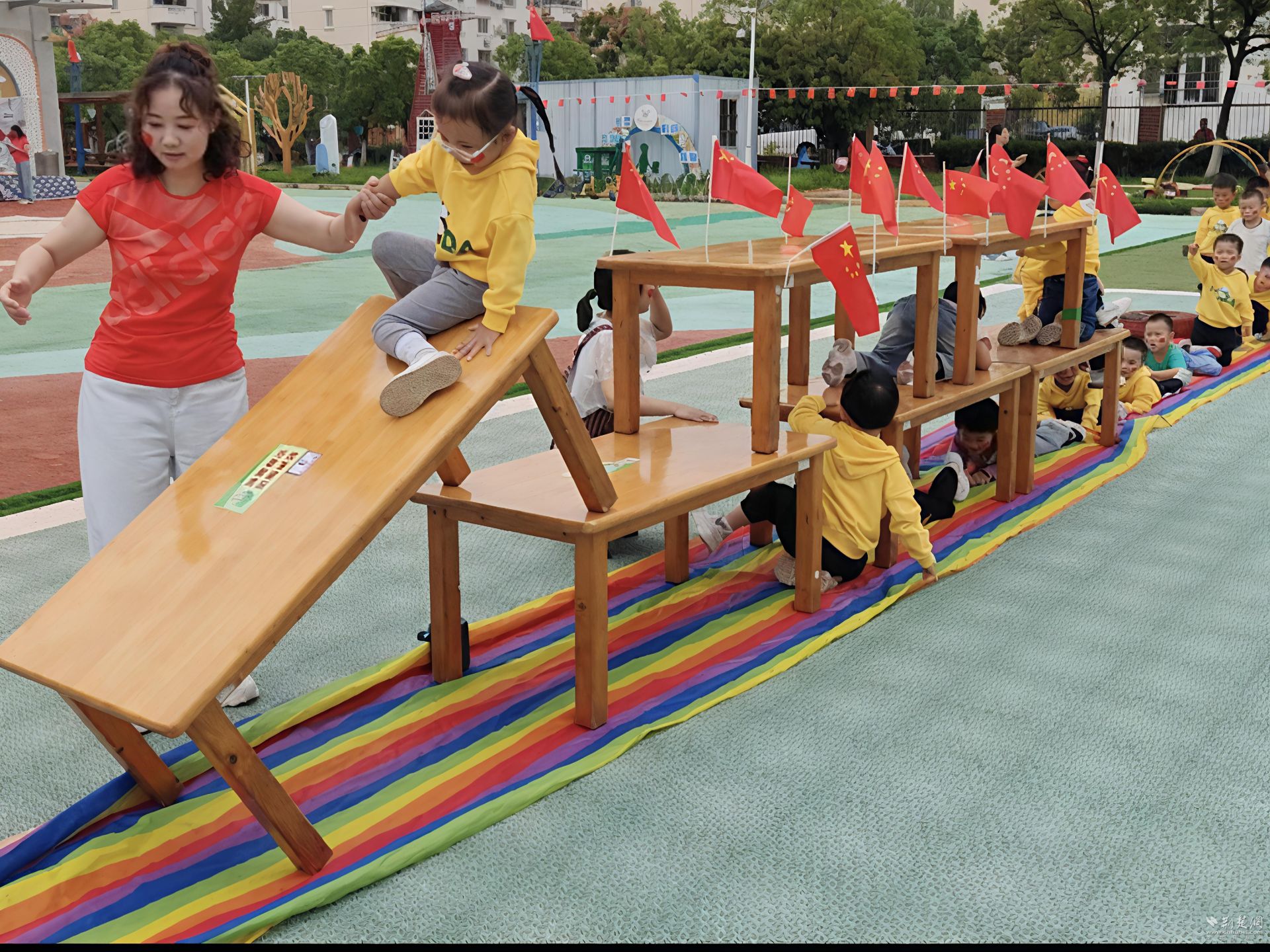 将爱国教育融入体能锻炼,是本次活动的一大亮点。“加油!再坚持一下!”在以长征故事为背景设计的体能循环挑战中,“飞夺泸定桥”“炸碉堡”等趣味关卡吸引了孩子们奋勇闯关。他们小心翼翼地通过“泸定桥”,协作完成“炸碉堡”任务,勇敢地攀爬一道道障碍,汗水与坚持见证了孩子们对革命先辈奋斗精神的最初感悟。活动后,孩子们兴奋地分享着“坚持就是胜利”的体验,长征精神在趣味挑战中浸润童心。