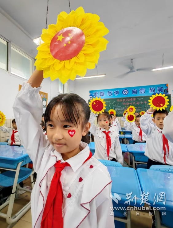 荆楚网(湖北日报网)讯(记者何鹏 通讯员罗薇)9月30日上午,江汉区航空路小学全体学生用自己最美的声音表达对祖国母亲的祝福。
