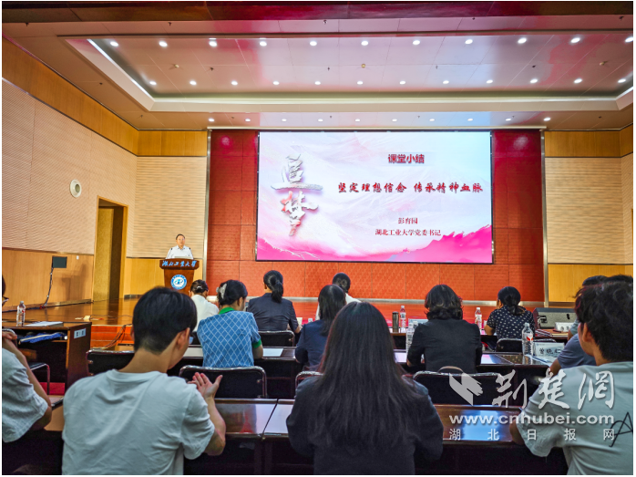 湖北工业大学党委书记、教授彭育园以“坚定理想信念,传承精神血脉”为题作总结发言,号召青年学子将大别山精神转化为奋进新时代的动力。