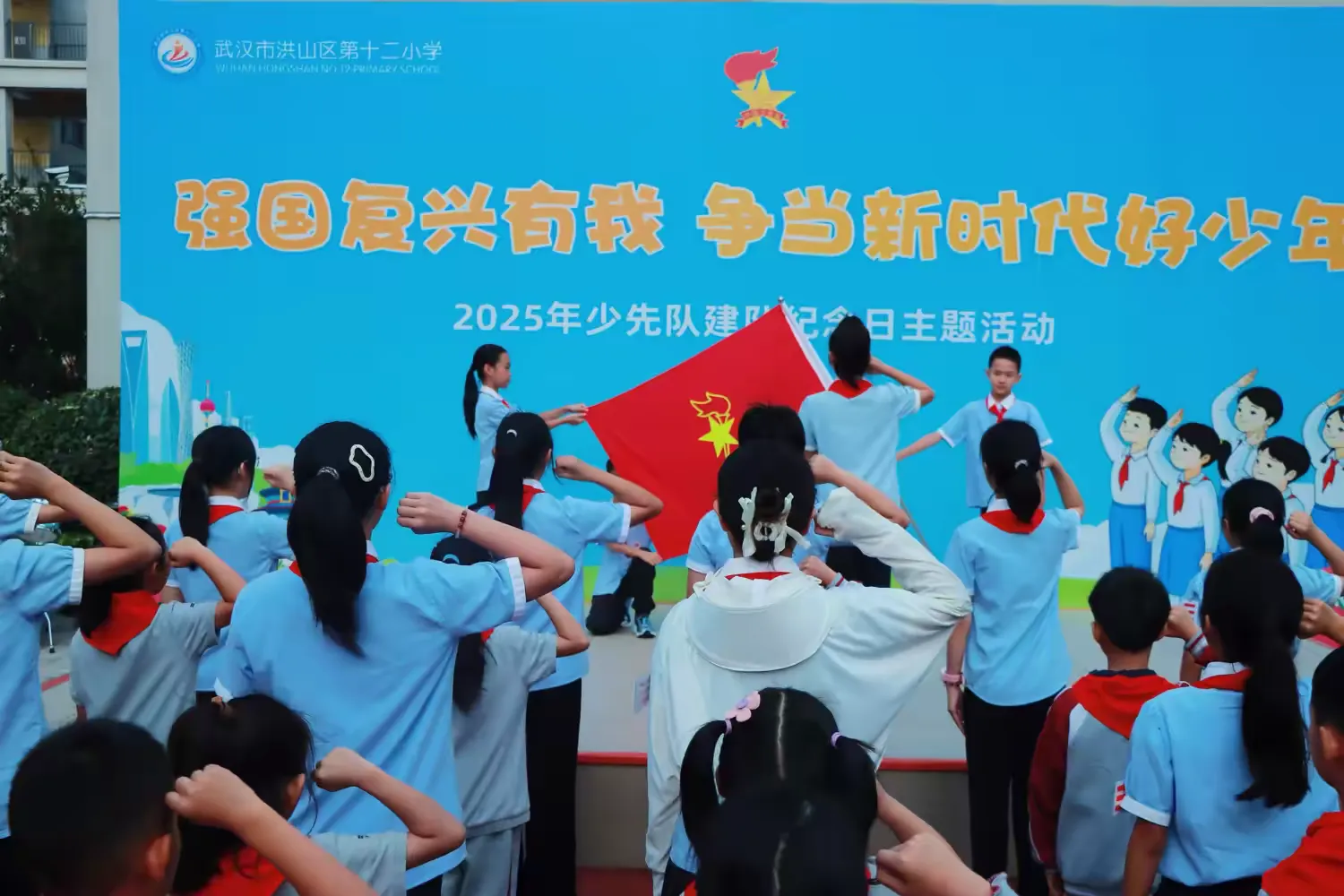 荆楚网(湖北日报网)讯(记者何鹏 通讯员董建丽)星星火炬,闪耀光芒。10月11日,洪山区第十二小学举行“强国复兴有我,争当新时代好队员”主题队日活动,该校师生用行动践行诺言,用热情点燃梦想。