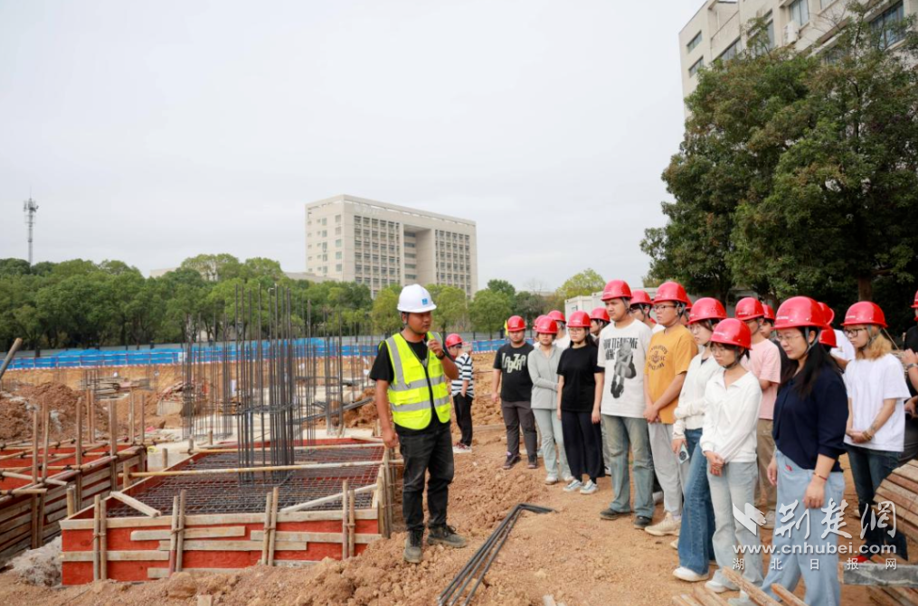 荆楚网(湖北日报网)讯(记者齐一璇 通讯员张建、李夏)10月11日,湖北城市建设职业技术学院教学楼施工现场迎来了一批特殊的“学习者”——建筑工程学院教师程红艳带领学生现场教学土方开挖、基础工程施工技术。本次教学,特邀中建三局项目生产经理吏善伟作为企业导师联合授课。无人挖掘机等智能建造设备的亮相让课堂充满科技感,为学生带来沉浸式工程实践体验。
