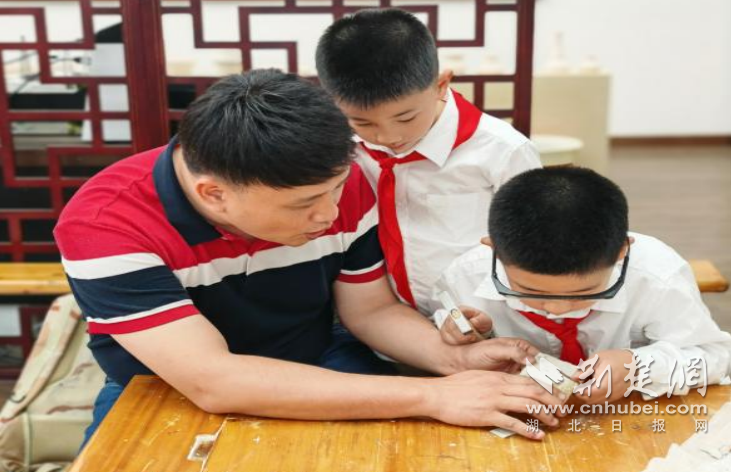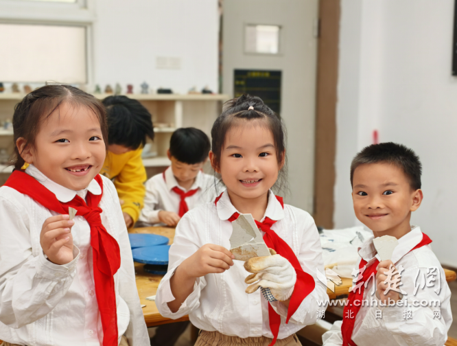 荆楚网(湖北日报网)讯(记者何鹏)10月13日,湖北省武昌水果湖第二小学陶艺手工教室里飘着淡淡的“岩石气息”,讲台上摆着放大镜、软毛刷、地质锤等“专业装备”。来自该校二年级三班沈羿霖的爸爸和中国地质大学(武汉)地球科学俱乐部的大学生们,正带着二年级三班40余名萌娃开启一场“化石修复奇遇记”,让“家长进课堂”活动变身生动的“移动地质实验室”。