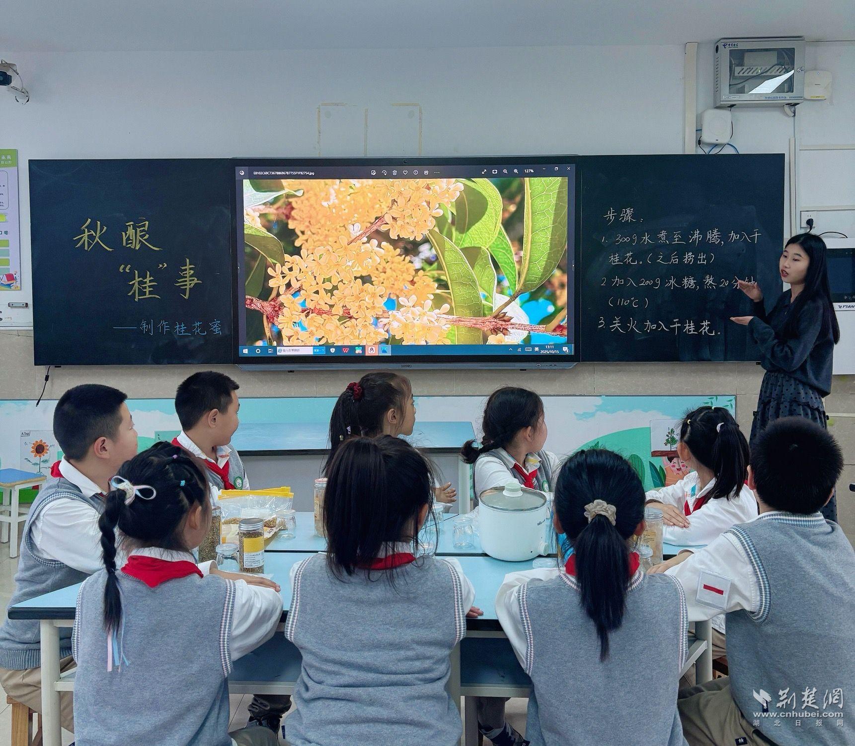 荆楚网(湖北日报网)讯(记者唐天琪 通讯员王长茜、胡琼)金秋十月,武汉市光谷第十一小学的校园里丹桂飘香,一场以“桂香润心”为主题的项目式学习活动正如火如荼地展开。三年级全体学生以桂花为自然教育载体,通过“观察-实践-感悟”的渐进式体验,在跨学科融合的实践中感知自然之美、传承文化之韵,让成长如桂花般悄然绽放。