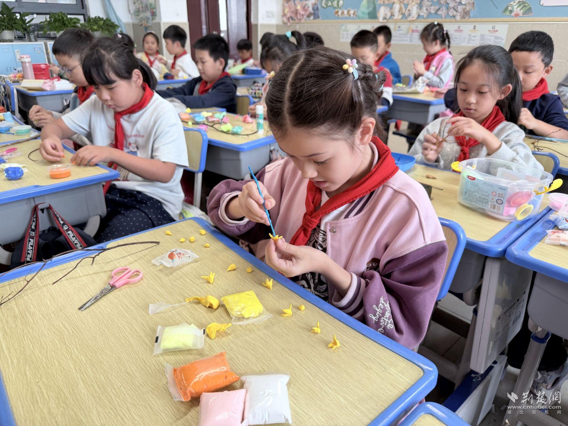 第二阶段“品桂·实践体验”,将学科知识与生活实践紧密结合。美术课上,学生制作创意书签,用黏土塑造桂花形态;数学课上,通过计算香包布料的面积与周长,探讨干桂花的最优分配方案,制作桂花香包;科学课上,学生分组制作桂花蜜,从晒干桂花、调配蜂蜜到搅拌装瓶,全程参与并分享成果。301班学生邹嘉怡感慨:“我放了1勺桂花、2勺蜂蜜,搅的时候闻到甜甜的香味,喝起来比饮料还好喝!我还把剩下的带回家给爸爸尝,他还夸我很厉害呢!”