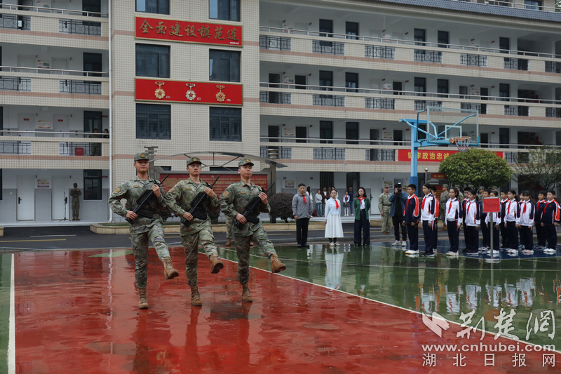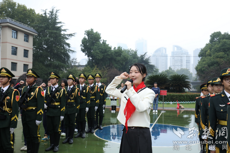 “我们是共产主义接班人,继承革命先辈的光荣传统......”嘹亮的《中国少年先锋队队歌》在军营里响起,在武汉市优秀少先队辅导员张雨萱老师的带领下,全体少先队员举起右拳,重温入队誓词。